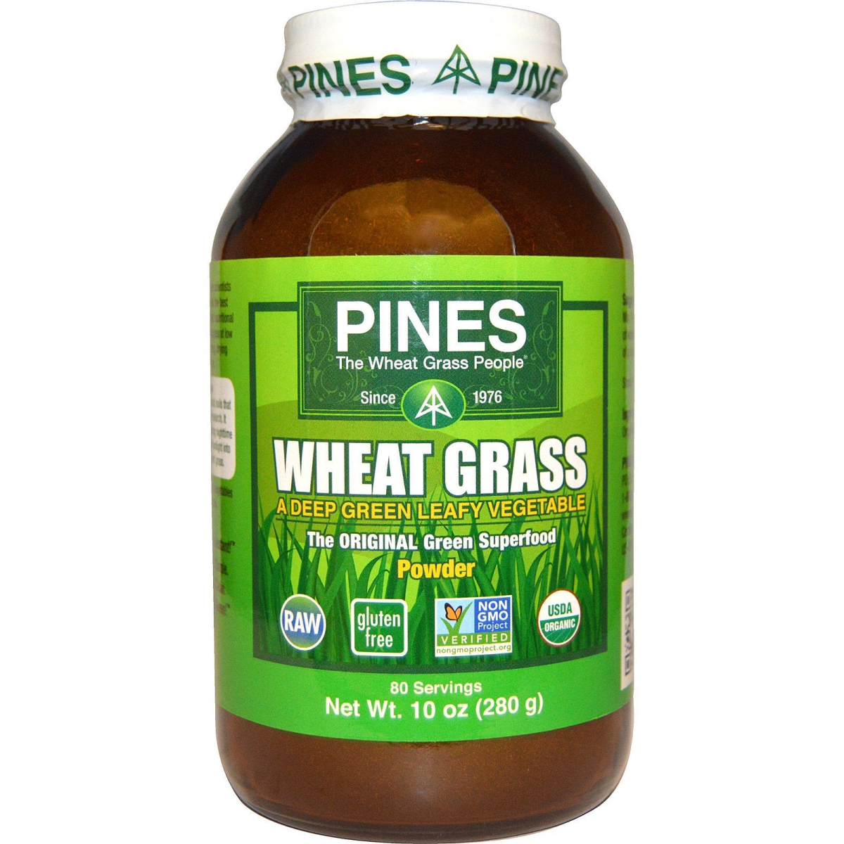 Oxygen Removed Sealed with Special Cap to Protect Nutrients The Wheat Grass People Since 1976 A Deep Green Leafy Vegetable The Original Green Superfood RAW Gluten Free Non GMO Project Verified USDA Organic 80 Servings Certified Organic by QAI Wheatgrass Research - Charles Schnabel and other scientists began studying wheatgrass in 1932. They determined the best climate, location, soils and stage of growth for highest nutritional density. They developed equipment to dry the wheatgrass at low temperatures. Pines follows these growing, harvesting, drying and packaging standards established by Dr. Schnabel. Never Grown in Greenhouses or Trays Pines Wheat Grass is grown in the same kind of glacial soils that produced the most nutritious wheatgrass in the research. It matures slowly, outdoors, during cold months. Freezing nighttime temperatures and cold days convert months of full sunlight into nutritional density, while the plant remains a short grass. Discover total health by consuming more dark green vegetables and essential whole food fiber with Pines Wheat Grass. The Vegetable Nutrition You Need - In An Instant! Keep it Simple Keep it Clean Keep it Green!