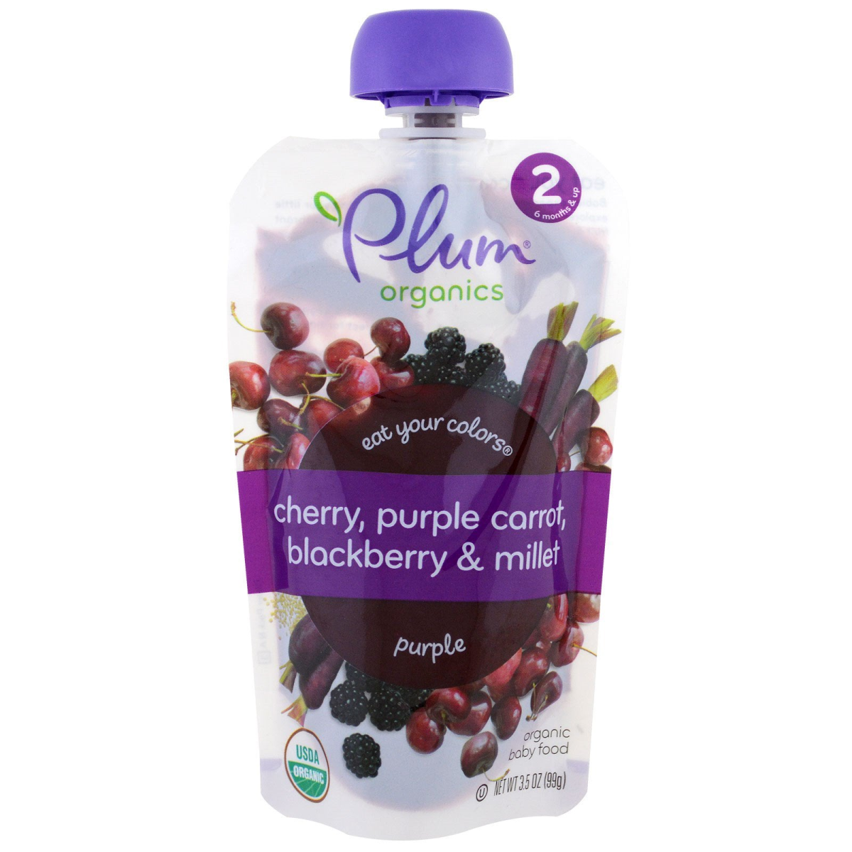 Plum s Stage 2 Eat Your Colors Purple Cherry Purple Carrot Blackberry & Millet 3.5 oz (99 g)