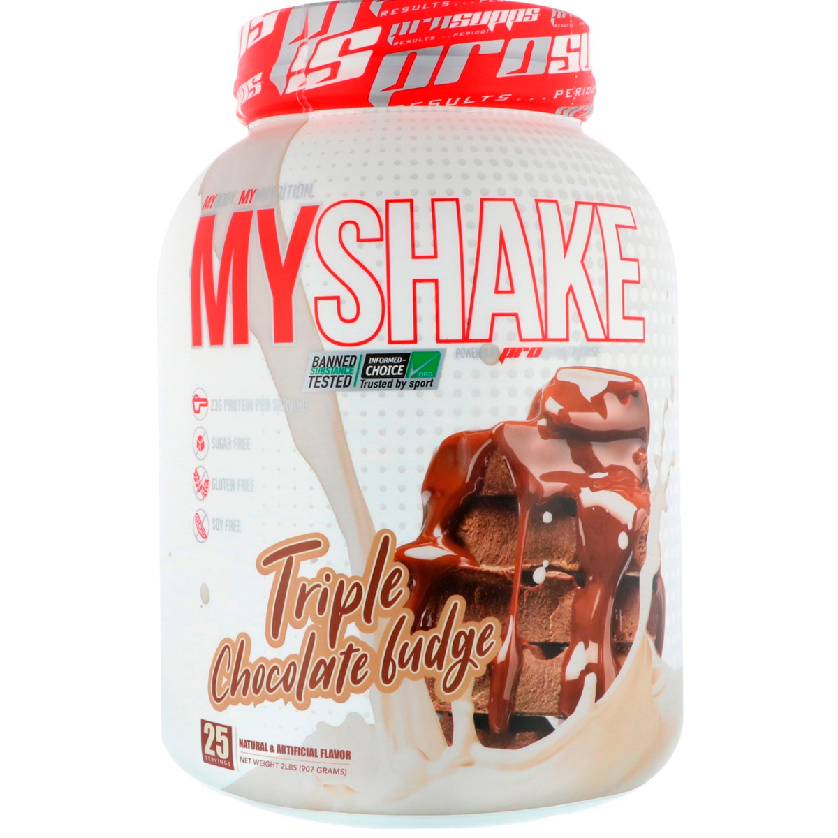 My Body. My Nutrition Banned Substance Tested Informed Choice Trusted by Sport 23 g Protein Per Serving Sugar Free Gluten Free Soy Free Natural & Artificial Flavors 25 Servings ProSupps MyShake was created with the idea that no matter what your physical goals are, the foundation of any successful regimen is built upon structured nutrition that supports lean muscle and reduced body fat. Containing 23 g of premium tri-source protein, MyShake harnesses the power of multiple protein sources to promote immediate protein synthesis and help sustain amino acid levels for hours, optimizing lean muscle repair and metabolism. With no added sugars and enhanced with MCTs for a fast burning energy source and CLA for supporting a healthy body composition, MyShake is more than just another protein shake. Gourmet Taste We created Myshake to deliver a new & unique flavor experience unlike any other. We have worked tirelessly, using world-class flavoring and no added sugars, to ensure each and every serving of Myshake will be an incredible taste experience whether it is mixed in milk, water or your favorite beverage. Ultimate Versatility Myshake was created for use anytime of the day! Delivering premium protein, healthy fats for supporting a healthy metabolism, and a premium flavor, my shake is the perfect protein choice. Whether used after a tough workout, as a healthy meal replacement for on-the-go individuals, or as a snack to help you stay on track, Myshake has you covered. Get Creative! Myshake is much more than just a traditional protein shake. Perfect for variety of uses, Myshake can be used in all of your favorite protein powder recipes - from shakes, muffins, pancakes, waffles, and cakes to protein bread, the possibilities are endless! Whey Protein Concentrate (WPC) Containing 80% protein content per gram, wpc is a great source of protein as it contains high levels of growth factors. With rich amino acid profile and a high bioavailability, WPC also contains beneficial components including natural lipids including conjugated linoleic acid (CLA) and high levels of naturally occurring immunoglobulins and lactoferrin that can contribute to immune system health and metabolism. Milk Protein Isolate (MPI) Derived from milk itself, MPI naturally contains 80% casein protein and 20% whey isolate protein per gram. It is highly regarded for a wide variety of uses including providing sustained amino acid levels in the blood stream due to slower digestion via coagulating in the stomach. This unique property of this slower digesting protein not only has been shown to help satiate hunger but also help stabilize blood glucose levels and raise metabolism due to the thermic effect of protein. Additionally, our premium-grade MPI undergoes an advanced processing method, providing a protein source with virtually zero fats, lactose, added sugars or cholesterol. Micellar Casein (MC) MC is a protein derived from cow’s milk with the term micellar referring to the fact that these proteins naturally aggregate into “micellesâ€