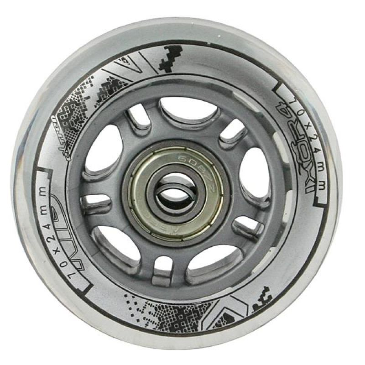 PU CLEAR NILS EXTREME wheels are made of polyurethane. The most important wheel parameters are hardness and diameter. Wheel hardness determines both ride comfort and grip. PU-82A wheels provide good shock absorption and excellent adaptability to any surface. Wheel diameter directly affects riding speed. Larger diameter wheels allow for higher speeds, but do not guarantee as much maneuverability as smaller diameter wheels.