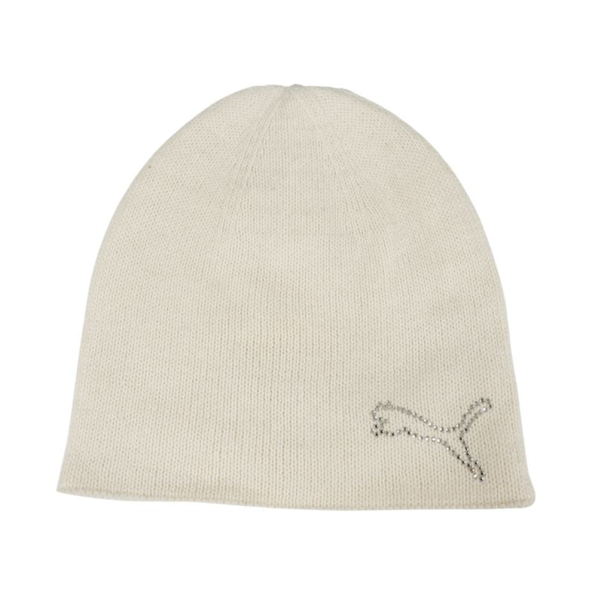 Puma Women's Winter Hat Cream 842082 03 This Puma hat helps you stay warm on cold days. Soft knit fabric. Beanie cut. Specifications: Material: 60% cotton, 40% acrylic Size (head circumference): one size (56-60 cm) Embroidered logo on one side and rhinestones on the other