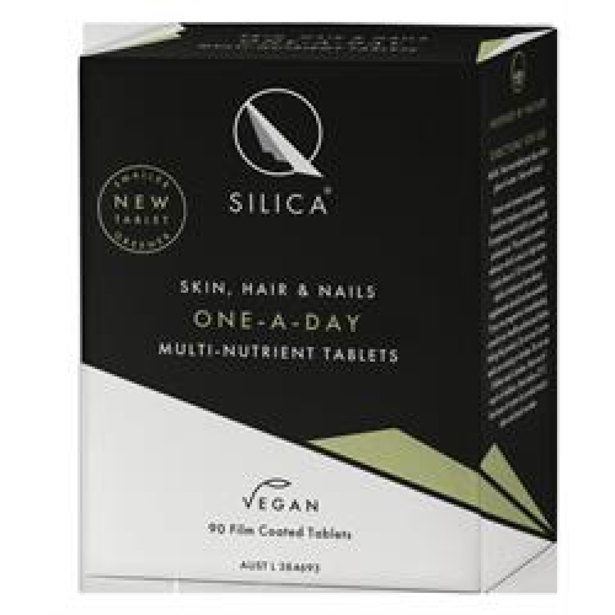 Qsilica Skin, Hair & Nails ONE-A-DAY Multi-Nutrient Tablets contain mineral silica, biotin, zinc and selenium in a convenient, once daily supplement. Silica supports bone integrity, assists connective tissue production and together with biotin and zinc, supports the health of your skin, hair & nails. Selenium and zinc also help reduce free radical damage to body cells. Choose Qsilica ONE-A-DAY tablets for: - Skin health - Healthy hair - Strong nails - Bone integrity - Antioxidant benefits - Connective tissue production - Intensive once-daily treatment Adults: Take one tablet per day with a glass of water. Take with food.
