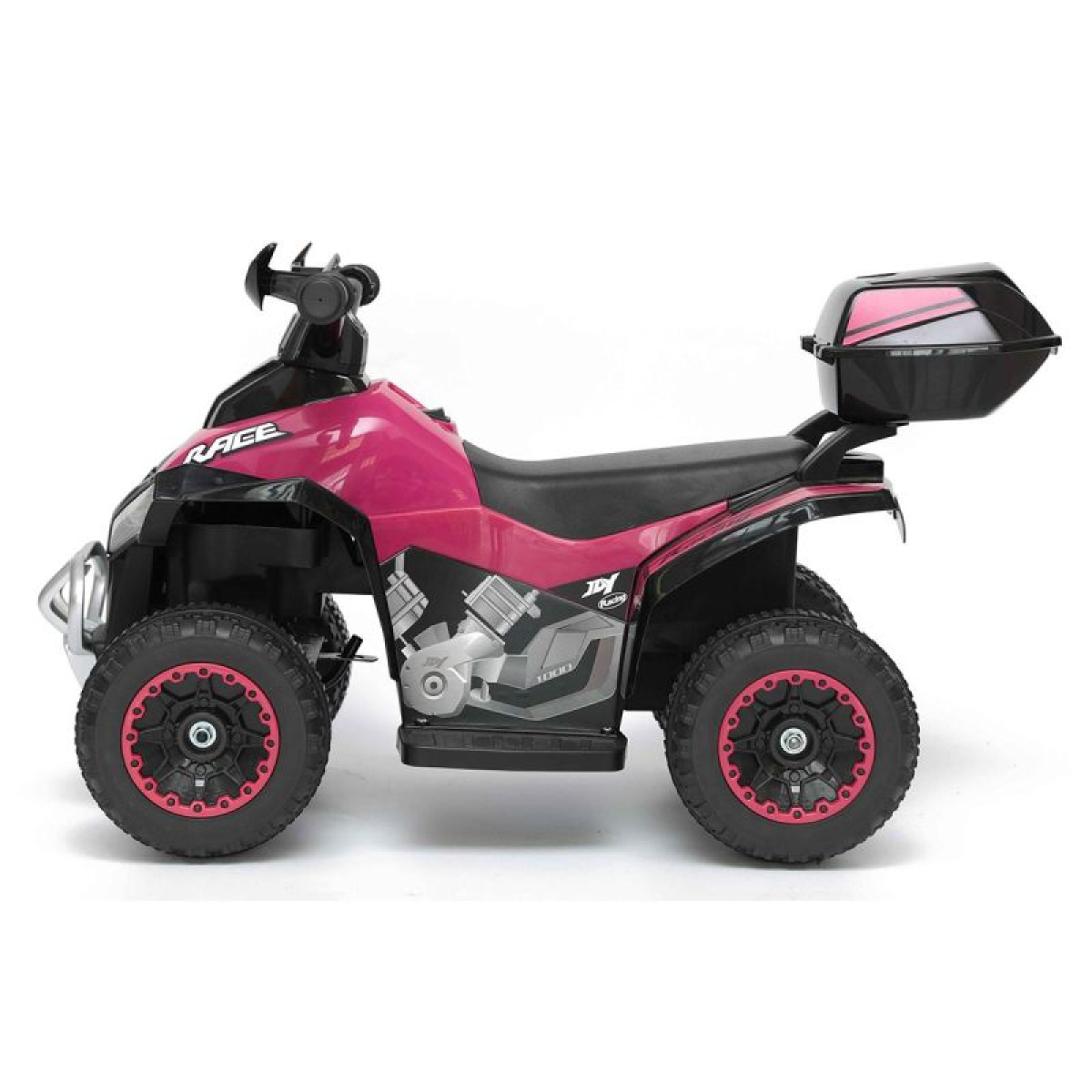 The MICRON PINK BATTERY-POWERED QUAD CAR 1039114 was designed for the youngest users who are just learning to ride independently. Its simple design, low speed, and 6V battery power make it intuitive to use and suitable for everyday play. It's a good choice for a child's first electric car.
