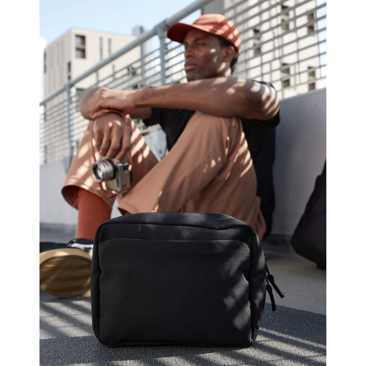 100% recycled | Zip front pocket | Plenty of internal compartments | Tonal zip pulls | 26x20x8cm