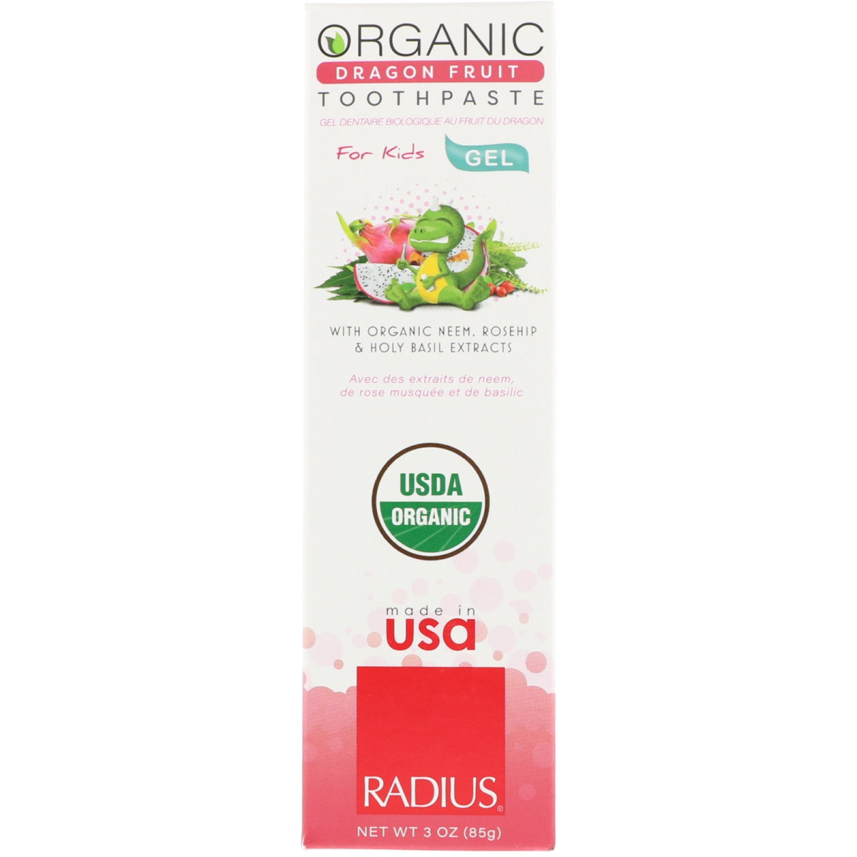 With Neem, Rosehip & Holy Basil Extracts USDA Do More With Your 2 Minutes! ally Fresh Your Routine GMO Free Dye Free Vegan BPA Free Fluoride Free Preservative Free Sulfate Free Gluten Free Paraben Free Saccharin Free Cruelty Free Carrageenan Free Artificial Flavor Free Certified by Ecocert ICO Ages 6 Months and Up Not Tested on Animals Carry-On Approved Radius is a family-run, certified women-owned business that designs and manufactures award-winning, premium personal care products in our historic headquarters located in Kutztown, PA. We create more than just "me-too" products. Our goal is to revolutionize and refresh your daily routine with products that are better by design. Radius USDA Gel Toothpaste uniquely blends erythritol, coconut water, chamomile flower, neem, rosehip, and holy basil extracts for a naturally clean, fresh brushing experience without any harmful chemicals or synthetic foaming agents. Delicious tropical flavor is packed full of vitamin C and makes brushing fun for the whole family! Help fight plaque with erythritol. Nutrient-rich coconut water and calming chamomile flower adds therapeutic properties to your brushing experience. Combination of neem, rosehip, and holy basil extract for healthy teeth.