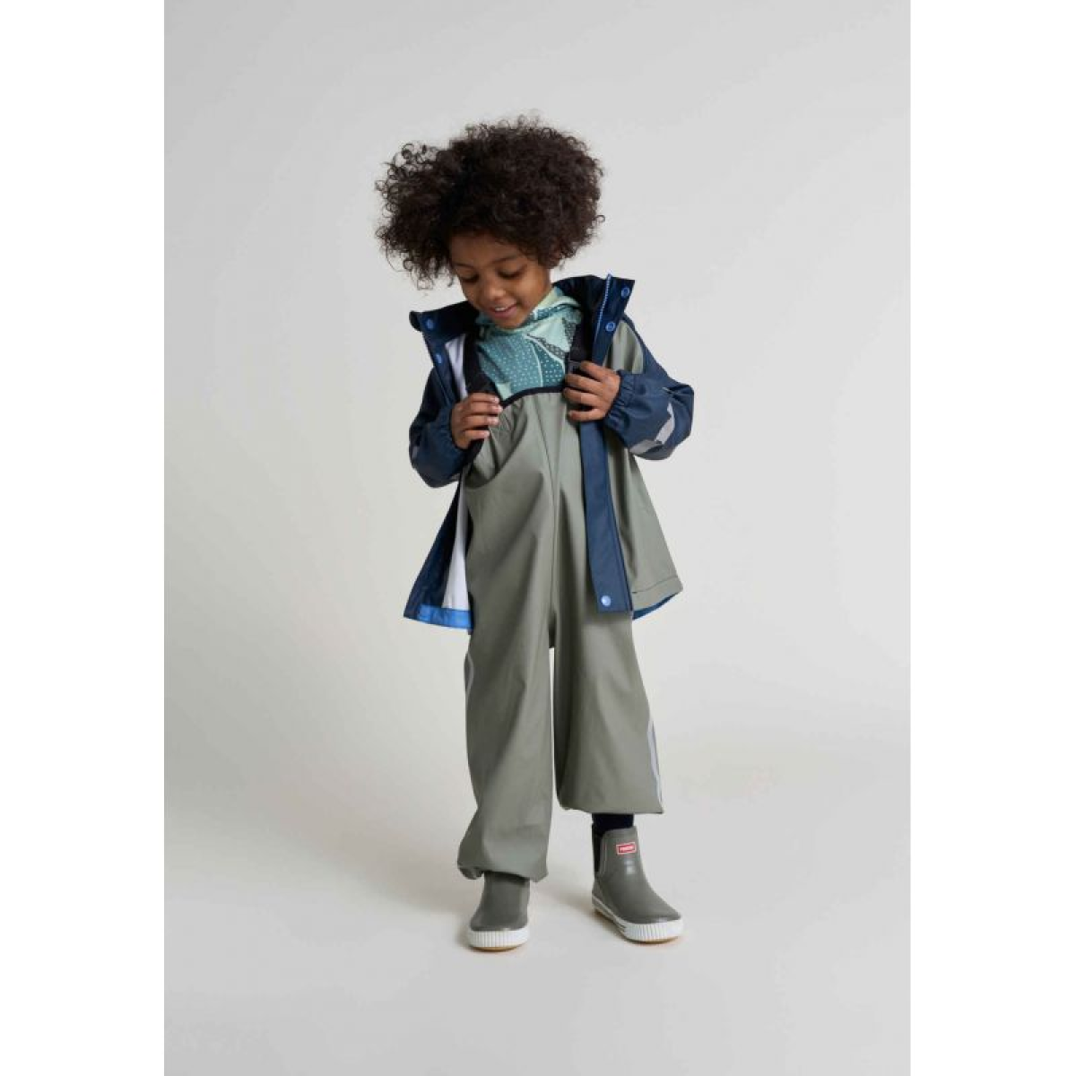 Children's rain pants guarantee full protection during rainfall thanks to waterproof welded seams.