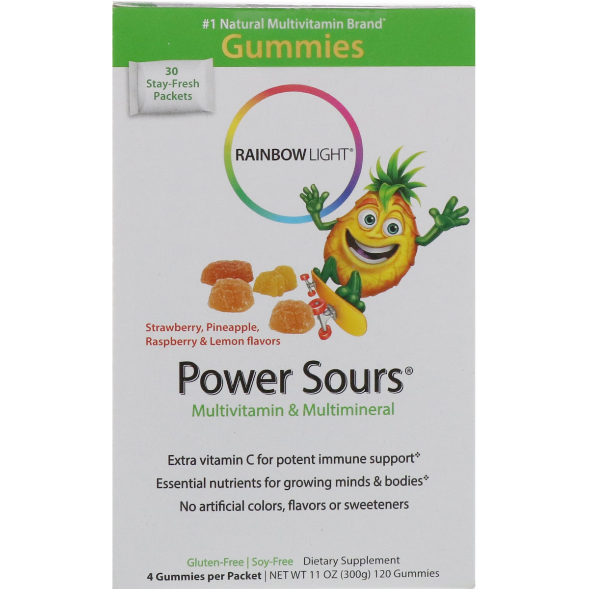 Rainbow Light, Gummy Power Sours, Multivitamin & Multimineral, Strawberry, Pineapple, Raspberry & Lemon Flavors, 30 Packets, (4 Gummies) Each
