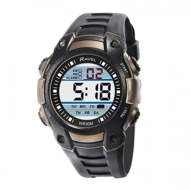 Ravel Mens 3ATM Digital Sports Black/Gold Watch RDG.14.9