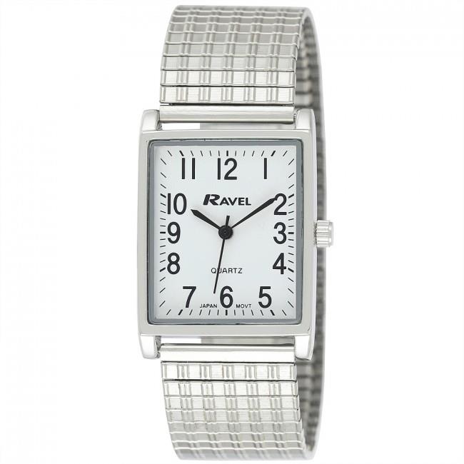 Ravel Mens Basic Classic Rectangular Silver Expander Bracelet Watch R0220.02.1