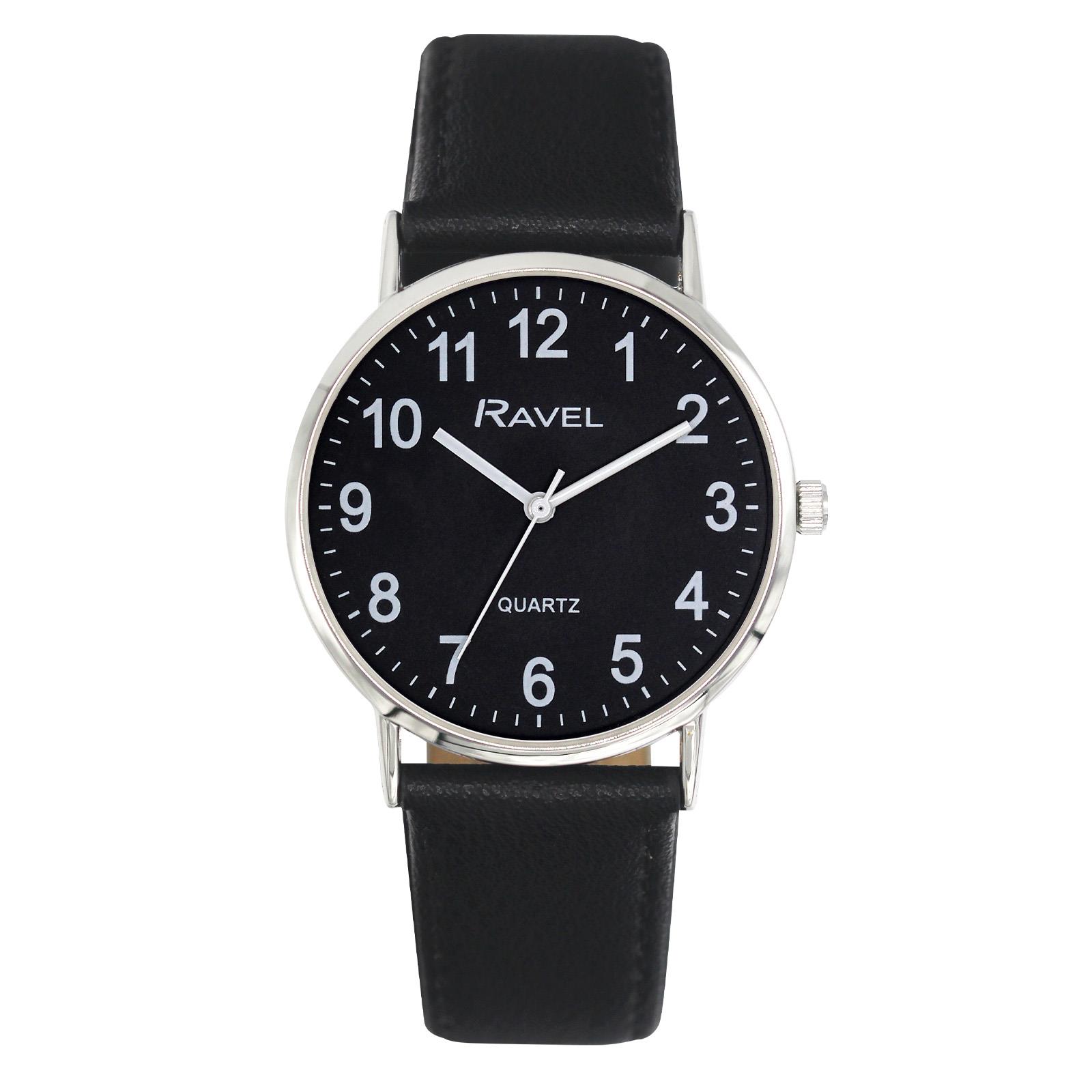 Ravel Mens Classic Big Black Dial Black Leather Strap Watch R0129.23.1