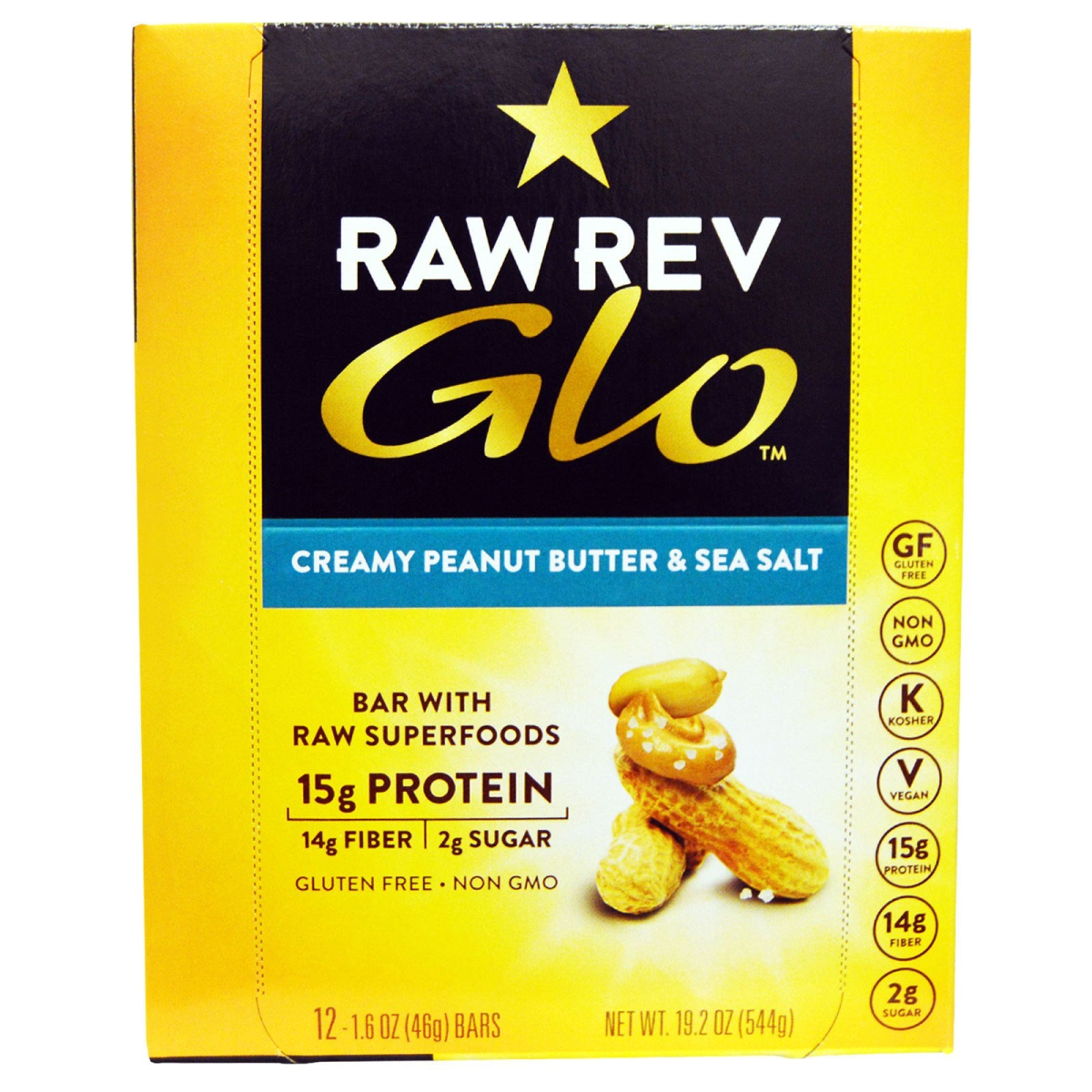 Raw Revolution, Glo, Creamy Peanut Butter & Sea Salt, 12 Bars, 1.6 oz (46 g) Each