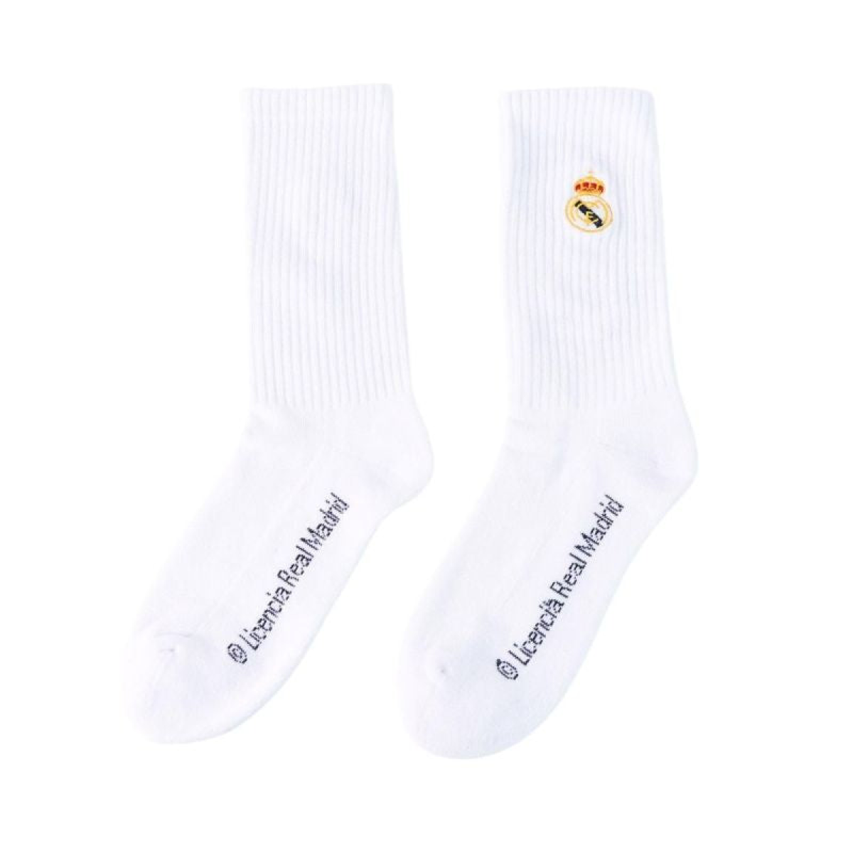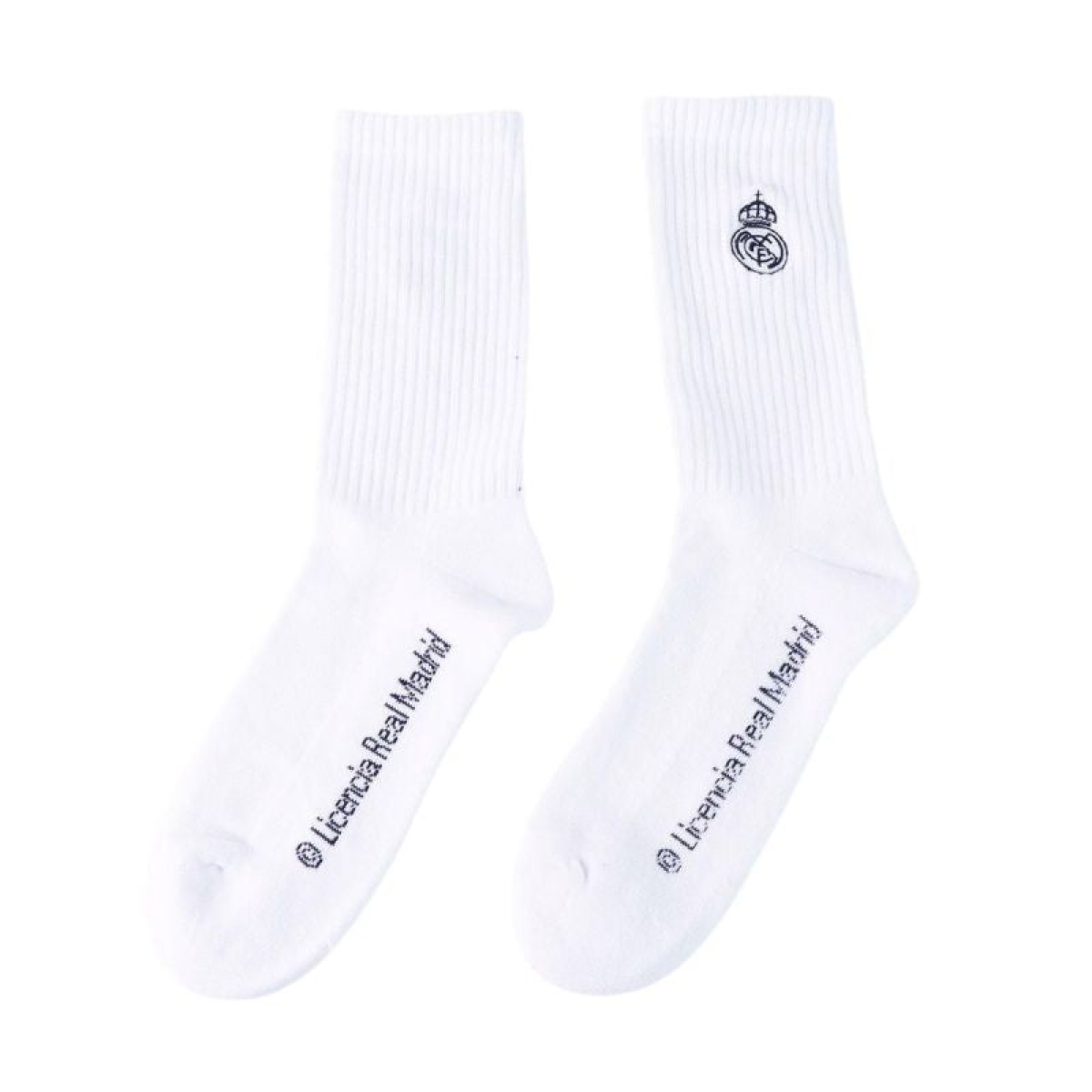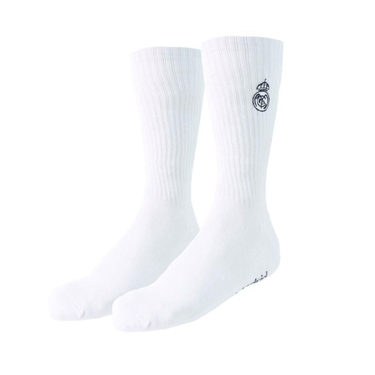REAL MADRID SOCKS 2 PACK Model: 2 PACK LONG WHITE SOCKS Catalog Number: 2900003433 Official, licensed product of Real Madrid Football Club. These socks allow you to express your support for your favorite team. Perfectly matched colors highlight their unique design. Our socks are made with great care and attention to detail. This product comes with a full set of manufacturer's tags and original packaging. Material: 75% cotton, 23% nylon, 2% elastane