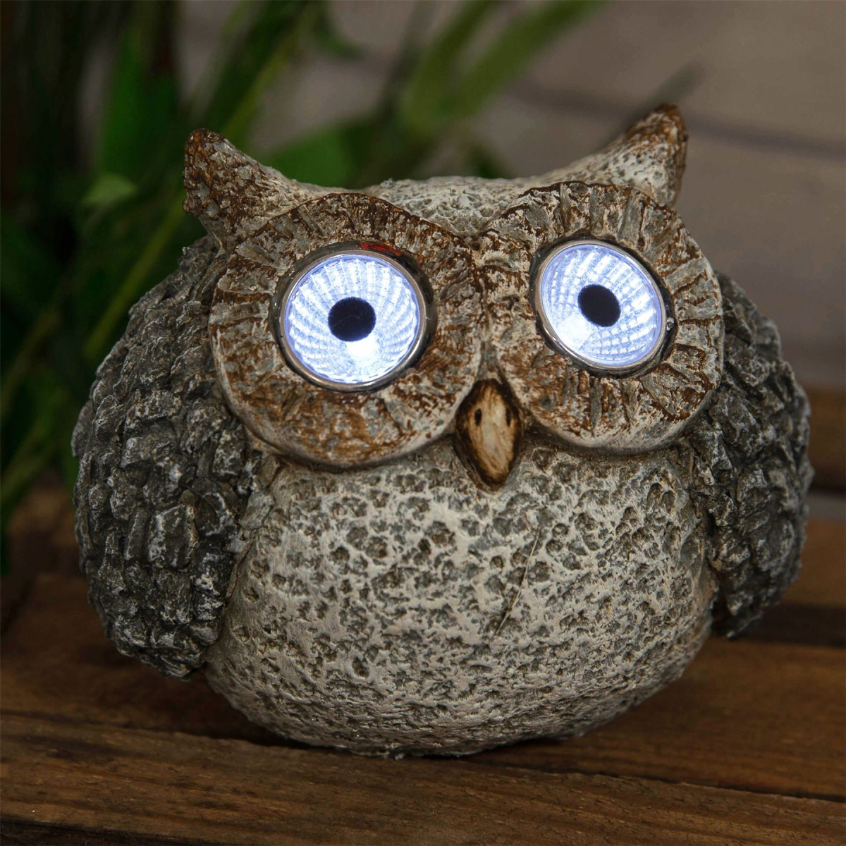 Bring some cheerful character and life to your garden with this delightful mock stone mosaic owl garden ornament with solar lights. From Country Living - gift and home bringing you closer to the great outdoors. Details: - Hand painted polystone - Mock grey stone mosaic effect - Charming owl design - Solar panel on the back with On/Off switch - White solar powered light eyes - H:11cm x W:13cm x D:8.5cm A wonderful way to bring some cheer and charm to your garden. A great way to light a summer party or barbecue.