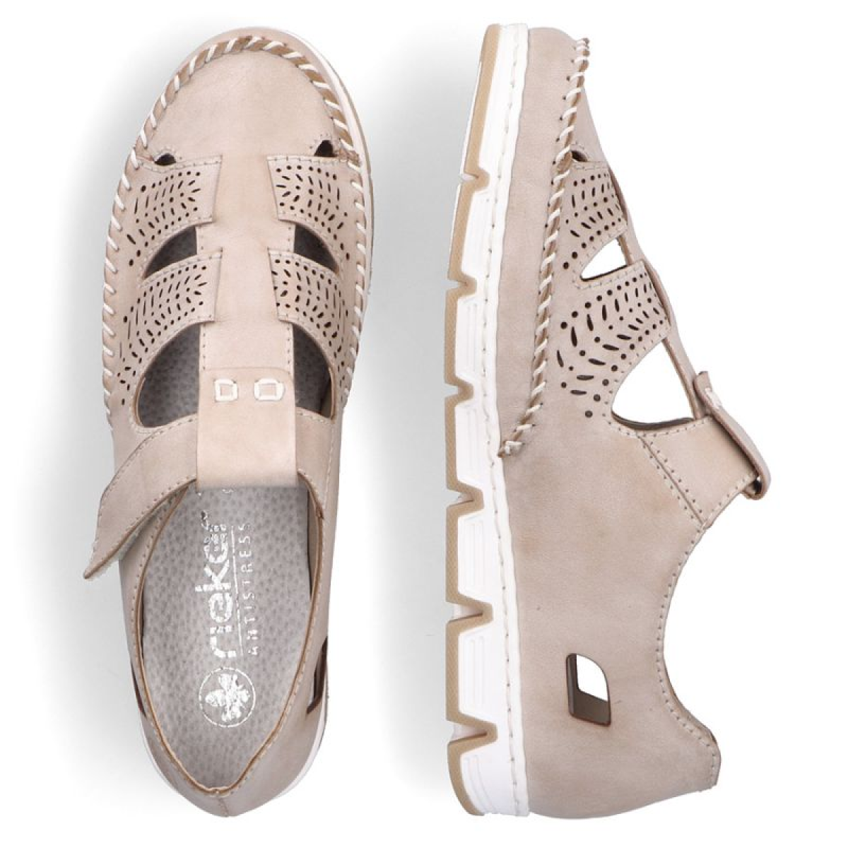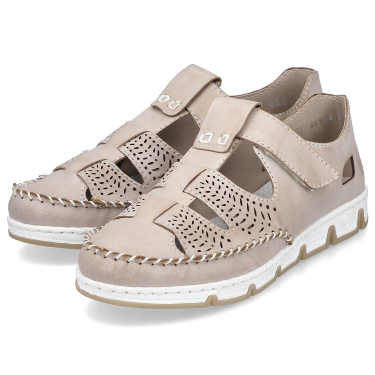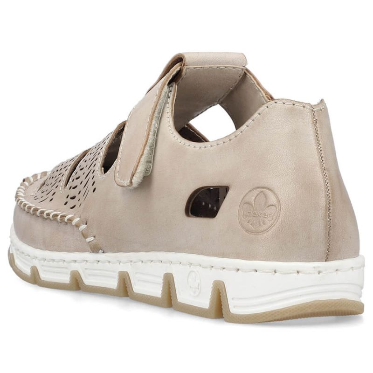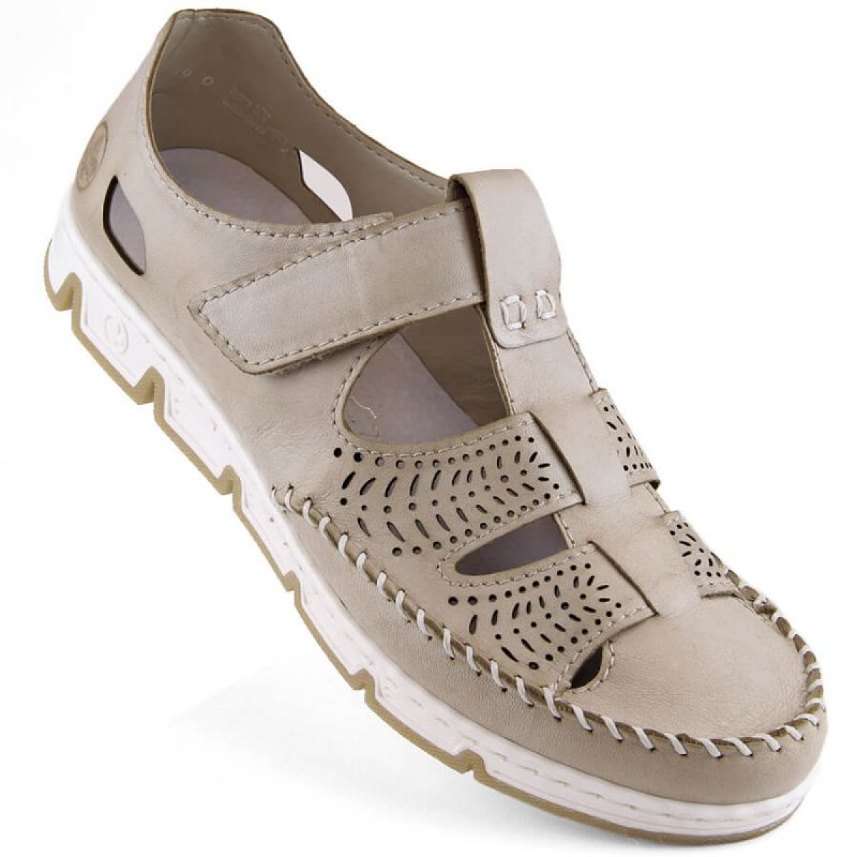 Rieker W RKR651 beige leather openwork shoes with velcro