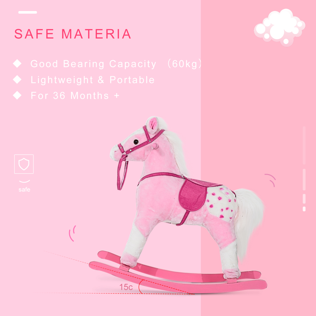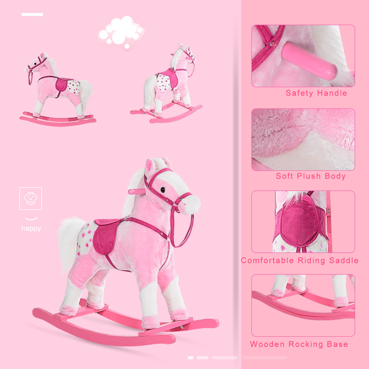 Classic Toy with Authentic Sounds: Combines a traditional horse design with updated features such as neighing sound like a real horse when the ears are pressed.Soft Plush Body: A softly padded polyester plush body and comfortable riding saddle recreate the look and feel of thrilling horseback riding adventures.Safe and Gentle Rocking: Smooth rocking ensures safety, let your child feel like they are riding without the danger of actual riding.Lightweight and Long-Lasting: Features a solid and stable metal frame that weighs only 2.5kg while still supporting up to 60kg of weight.Suitable Ages: This quality toy is recommended for children age 36 months and up, provides a fun experience for older kids as well. Overall Dimension:74L x 28W x 65Hcm.