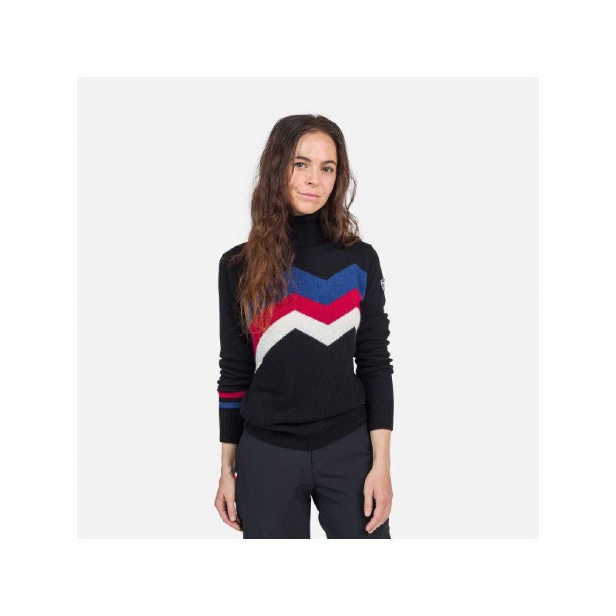 Share your love of the mountains and all their magic with the Rossignol Women's Mountain Turtle Neck Top. Its design nods to the brand's Alpine heritage, with mountain-inspired stripes and colors inspired by the French flag. The soft and cozy blend of merino wool and cashmere makes this sweater perfect for everyday wear.