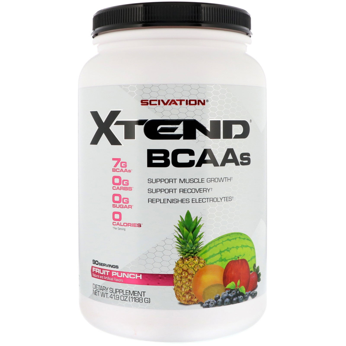 Support Muscle Growth Support Recovery Replenishes Electrolytes 7 g BCAAs* 0 g Carbs* 0 g Sugar* 0 Calories* Natural and Artificial Flavors 90 Servings Dietary Supplement NSF - Certified for Sport Informed Choice- Trusted by Sport Scivation Xtend contains 7 g of BCAAs - in the nature-designed and widely-researched 2:1:1 ratio - along with Glutamine and Citrulline Malate. Plus, with a proprietary blend of hydration-promoting electrolytes, Scivation Xtend is the delicious, refreshing, sugar-free way to help anyone grind through a grueling gym session. World-class athletes, elite bodybuilders, champion powerlifters, and weight-training enthusiasts of varying types use Scivation Xtend during their workouts in order to help them train longer, harder, and with more intensity. Use Scivation Xtend to get the most out of your next workout. *Per Serving