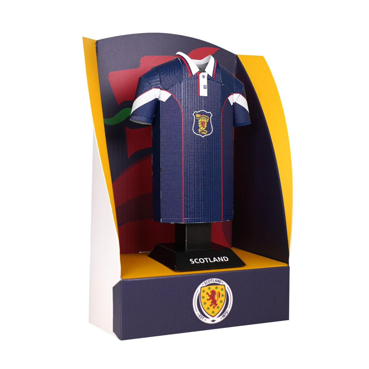 Make it your own piece of Scottish football history – the included decal sheet lets you add the name and number of your legendary national hero to the shirt. Complete with a detachable magnetic unit, this collectible is ready to display anywhere you want: in your home, your office, or on any magnetic surface where football passion belongs.
