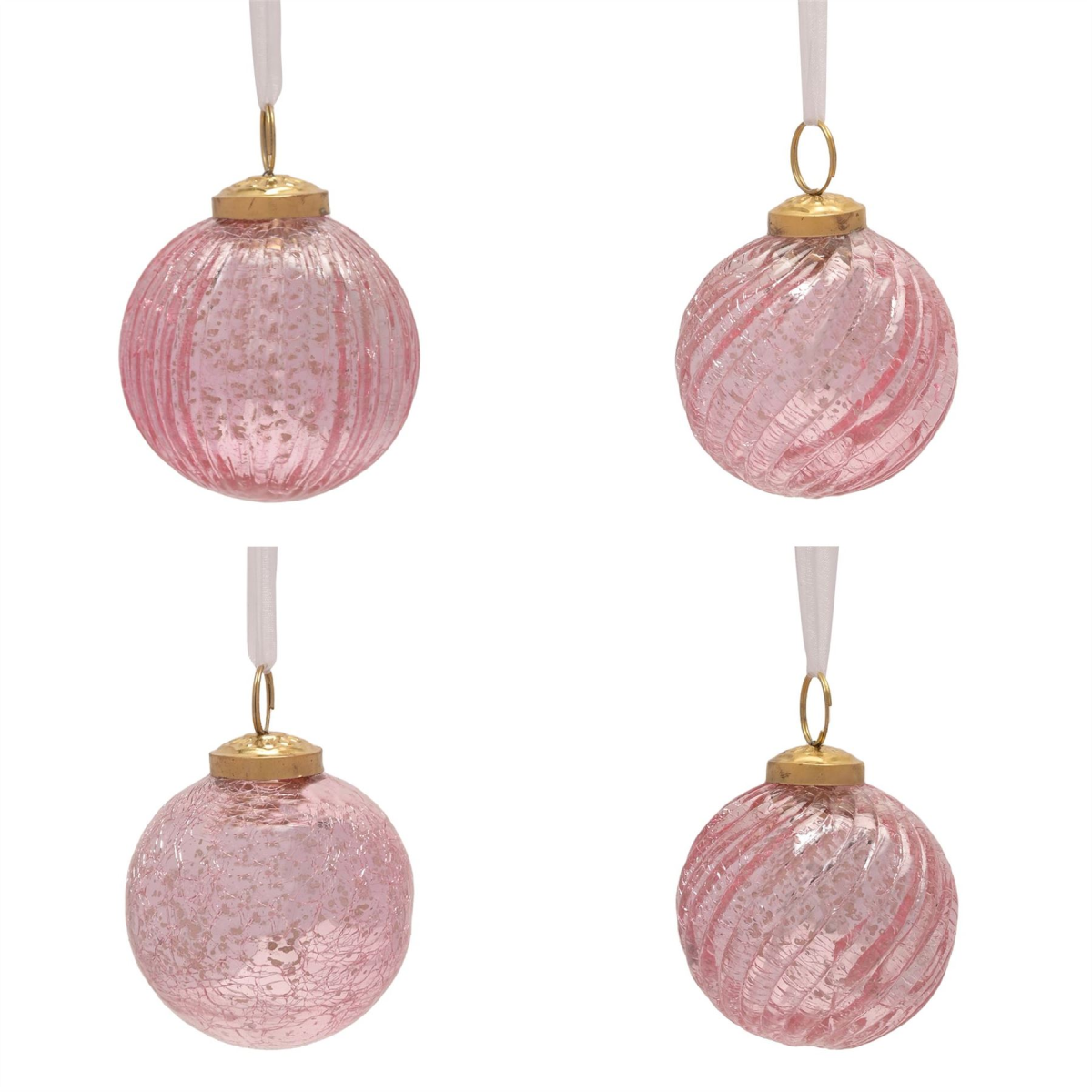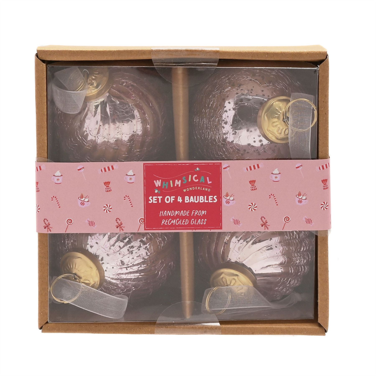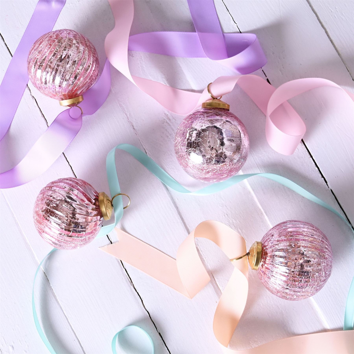 A set of four pink recycled glass baubles from THE SEASONAL GIFT CO�.