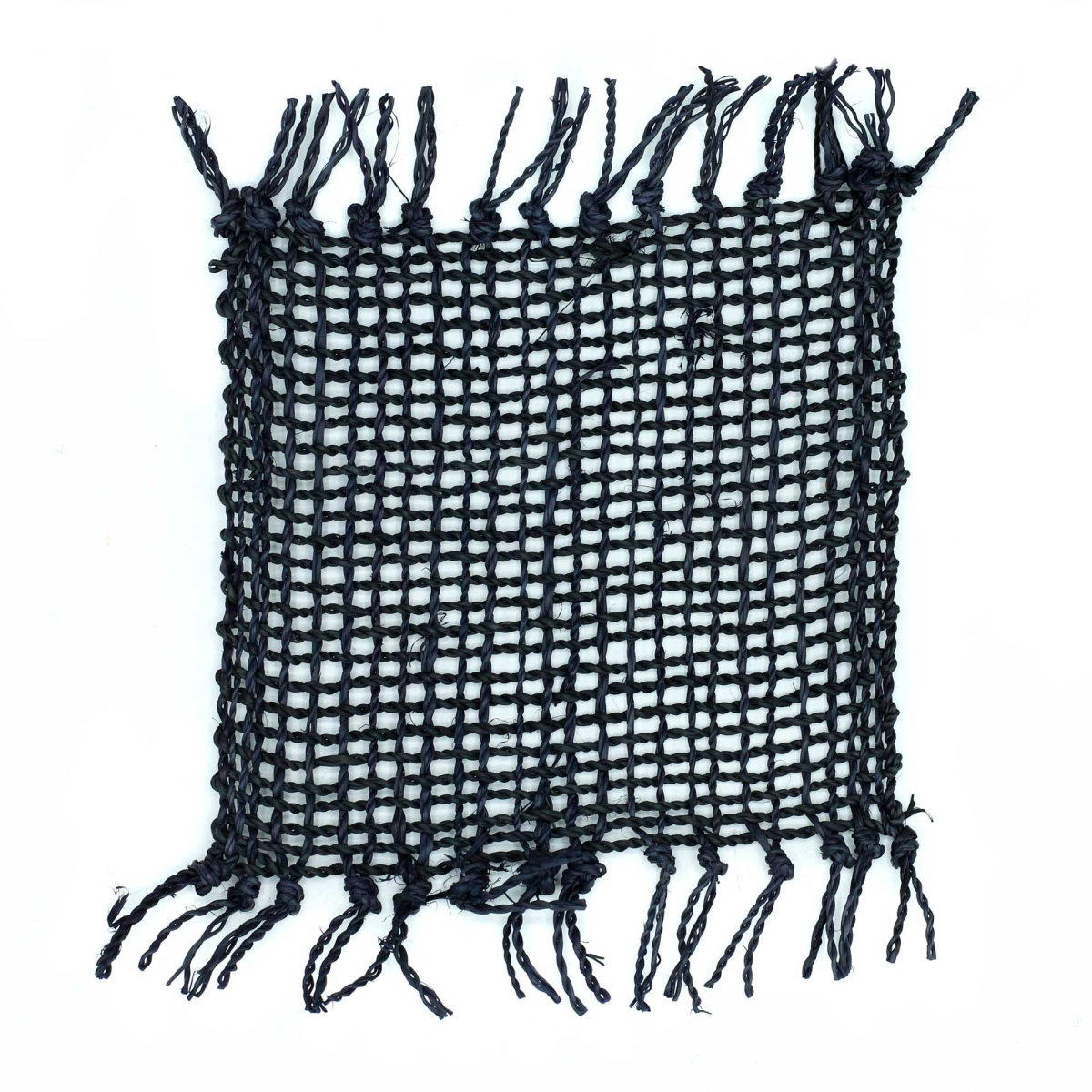 Handcrafted by skilled artisans in Indonesia and made from eco-friendly seagrass, these coasters feature a striking black finish with fringe detailing, combining durability with minimalist sophistication. Ideal for customers who value sustainability and modern design, these coasters provide both protection for tabletops and a stylish decor element.