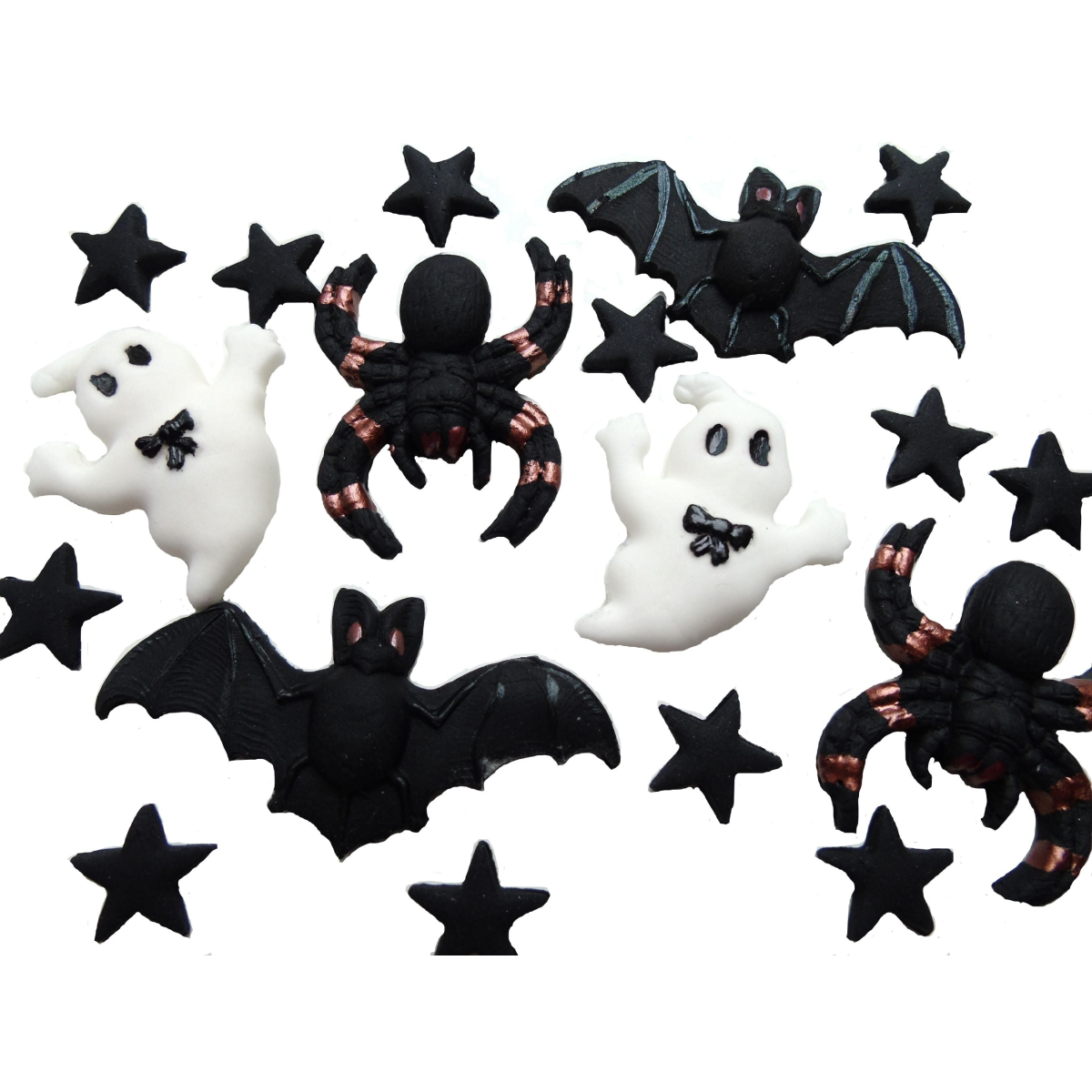 Set Halloween Bats Spiders Ghost Vegan Edible Cupcake Toppers