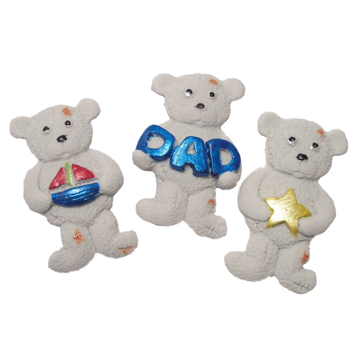 Set of 3 edible teddy cake toppers. Great for decorating Dad's Birthday, Fathers Day celebration bakes. stand out toppers