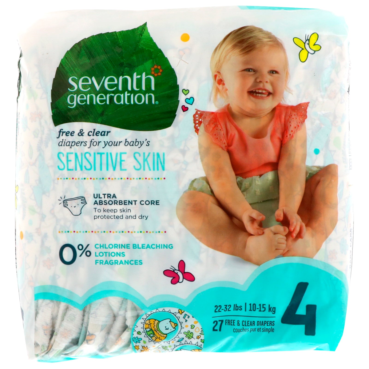 Seventh Generation, Baby, Free & Clear Diapers, Size 4, 22-32 Pounds (10-15 kg), 27 Diapers