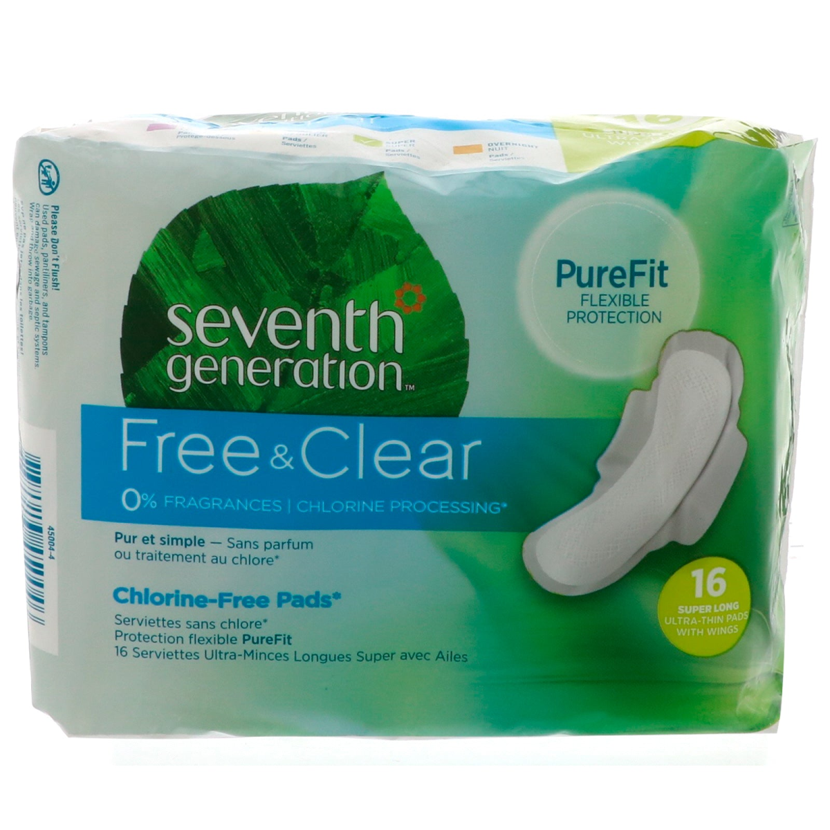 Seventh Generation, Free & Clear, Ultra-Thin Pads with Wings, Super Long, 16 Pads
