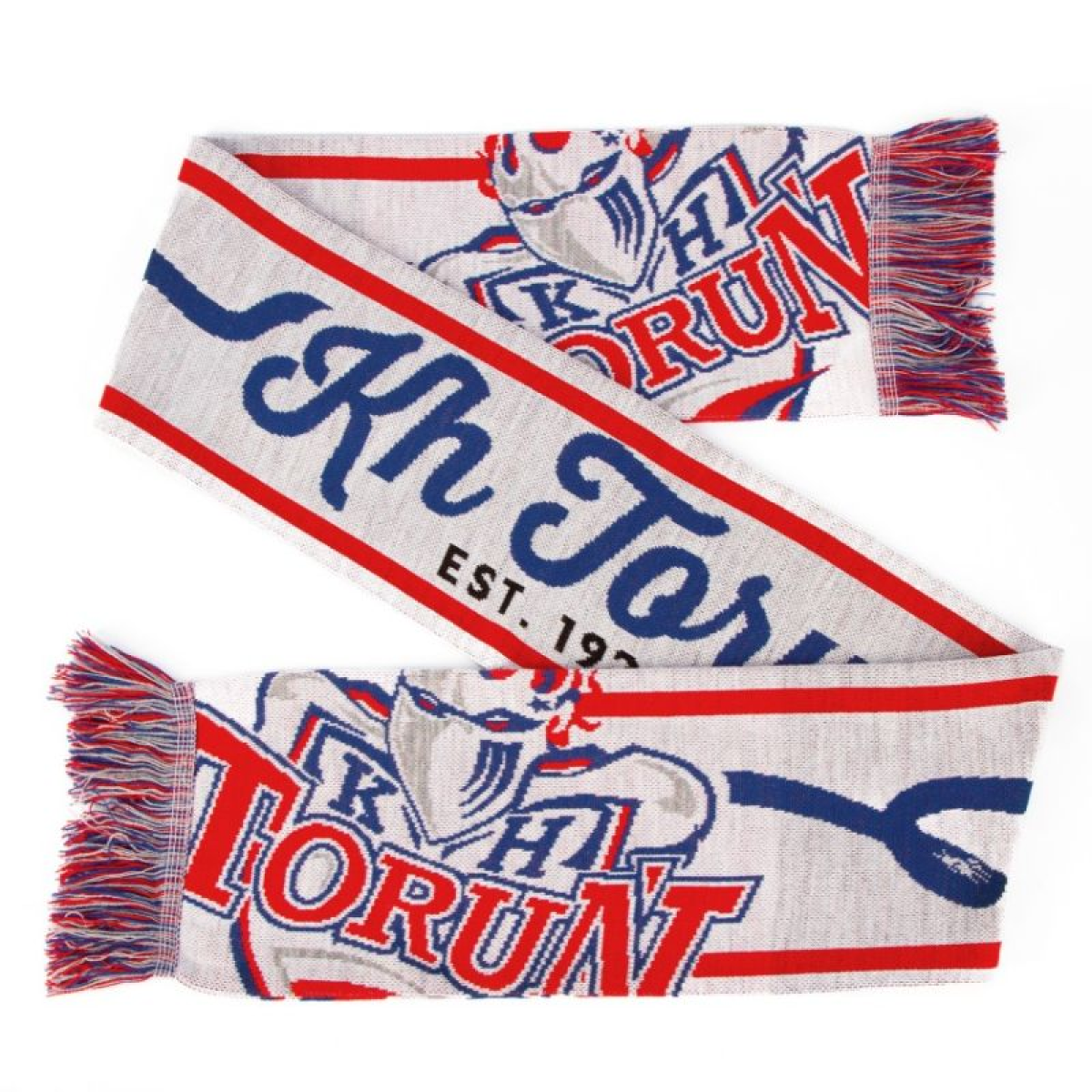 The KH Toruń 1924 Scarf is a stylish accessory for fans of the Toruń hockey club, perfect for matches and everyday support of the team. Key features: Unique design: Elegant white, blue, and red colors, with the KH Toruń crest on both ends and a dynamic "KH Toruń EST. 1924" inscription. High-quality material: Soft, durable fabric ensures comfort and longevity. Excellent workmanship: Carefully crafted fringes emphasize the scarf's sporty character. The KH Toruń 1924 scarf is an excellent choice for any fan who wants to show their support for the team both in the stands and on a daily basis.