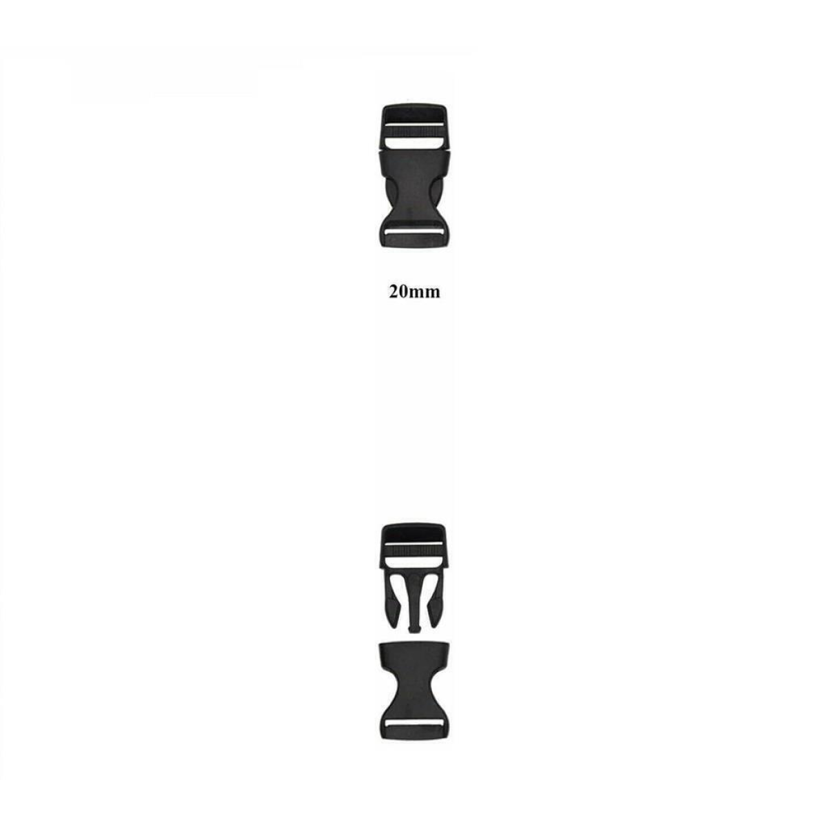 Delrin Side Release Buckles, 5 Sizes, for Webbing DIY Paracord Bracelets, BlackCHOOSING A SIZE: Our buckles come in a choice of size options (20, 25, 32, 38, 50mm). This refers to the thickness of strap you are using and not the buckle itself (for buckle dimensions please see below in product description).SAFE & SECURE: Made from acetal homopolymer plastic, Delrin Buckle clips have a high tensile strength. The side release action is easy to use with maximum hold. Press inwards at each side to release the buckle parts. To re attach, slot both parts back inside each other and apply gentle pressure. Once fastened, the clip is held firmly in place.MULTI PURPOSE: Side Release Clips can be used on belts, backpacks, webbing straps, luggage straps, dog harnesses, lanyard clips and much more.COST EFFECTIVE: Avoid buying new products. Simply replace and repair broken clips on all your existing items.