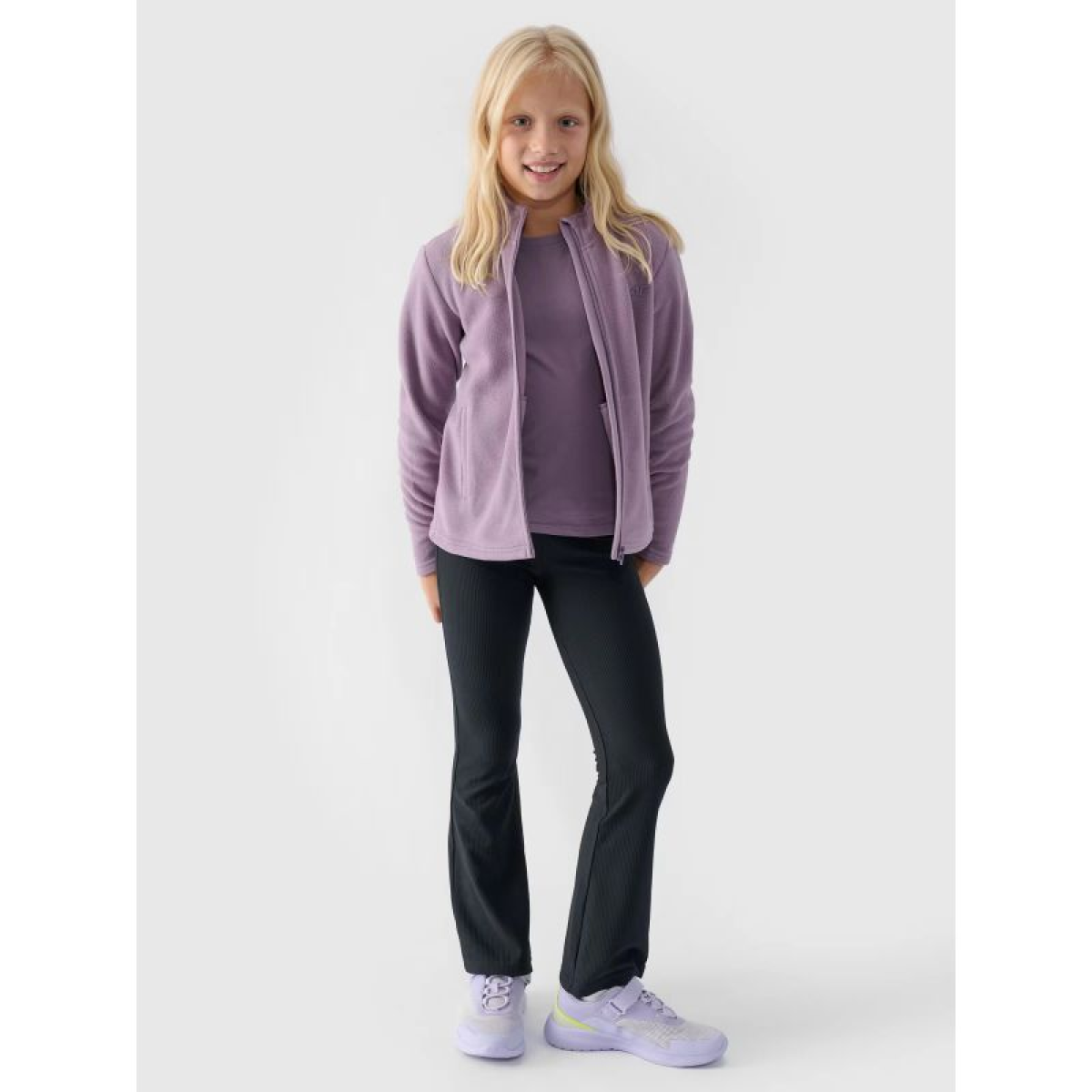 Girls' 4F Fleece - Functional Materials, Maximum Comfort: 4FWarm technology supports thermal comfort. This fleece sweatshirt is made of smooth, soft-to-the-touch fleece, which provides excellent thermal insulation, while also being breathable and quick-drying. Details that matter: a comfortable stand-up collar and practical pockets. The fleece sweatshirt features a stand-up collar that protects the neck. Classically finished cuffs. Two open pockets are located on the sides. Fastened with a one-way main zipper.