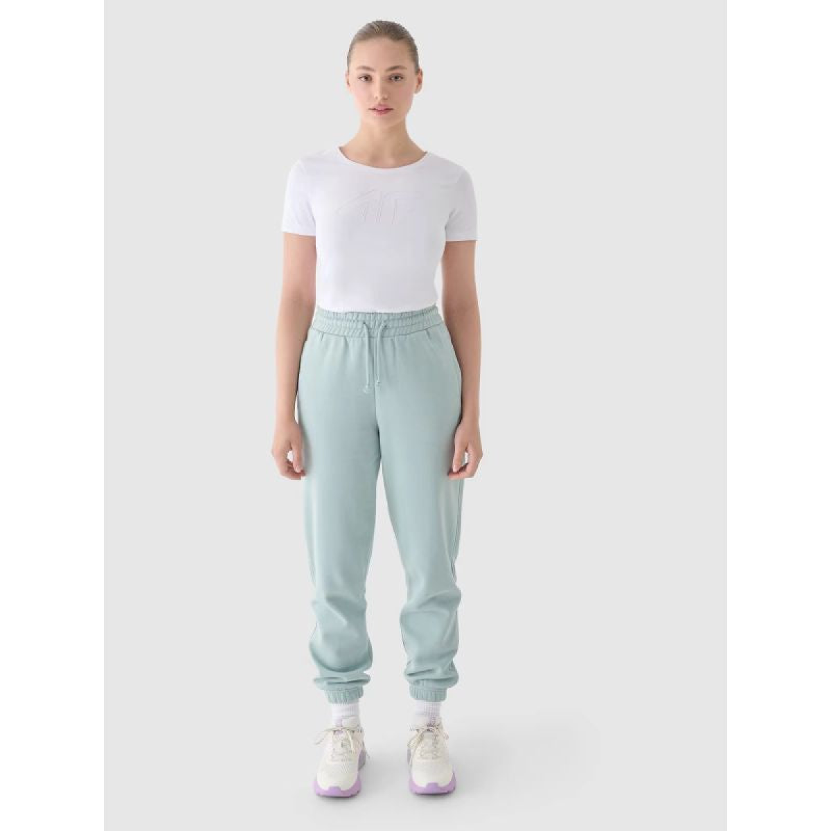 This women's printed T-shirt , with its 180 gsm weight, is soft to the touch and drapes well. It's non-sheer and provides durability and comfort for year-round wear. The 4F women's T-shirt is made of 95% cotton, making it soft, durable, and pleasant to the touch. Thanks to the addition of 5% elastane, it's stretchy and fits comfortably. The crew neckline is finished with a subtle ribbed trim. The "4F" print is visible on the front.