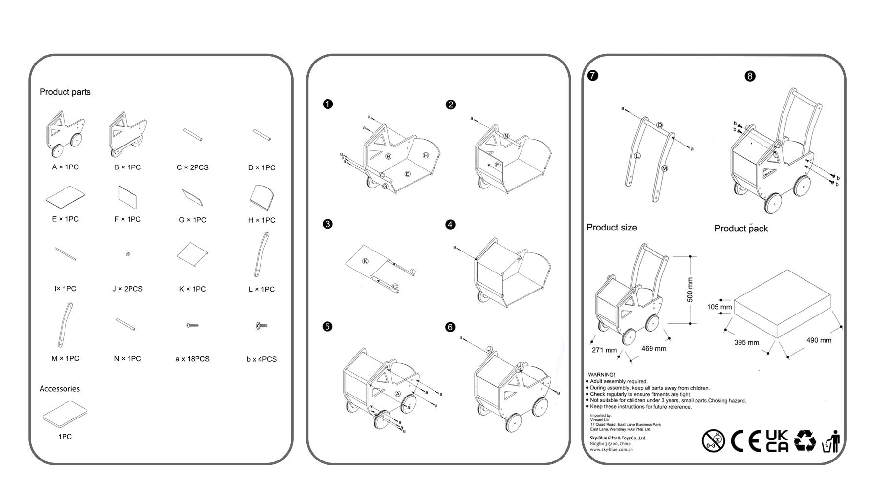 SET INCLUDES - Pram with bedding. Doll Not Included. Includes Instruction Manual. Not suitable for children under 36 months of age, due to small parts and choking hazards. Requires assembling by an adult. Assembled Toy Measures W 27.5 x L 49 x H 50 cm.