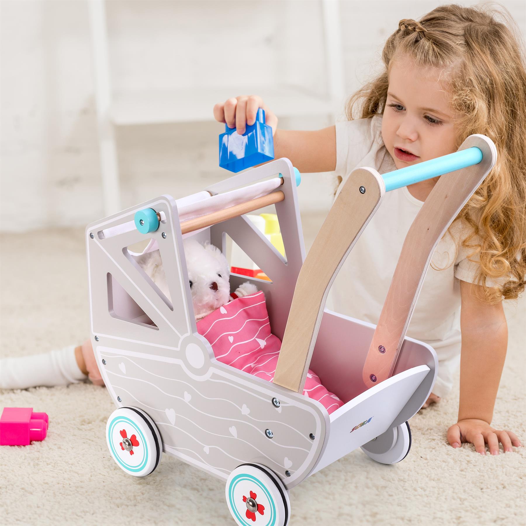 BENEFITS & DEVELOPMENT - Imitating grown-ups’ behaviour is essential for a child's development and upbringing and this pram will encourage your child to look after their dolls, keeping them tucked up and safe in the pram, going for walks, and visiting friends. Whether it’s a solo play with teddies and dolls or with friends, encourage little ones to learn via role-play and develop their social skills, hand-eye coordination, and imagination! It also helps to enhance caring abilities in children.