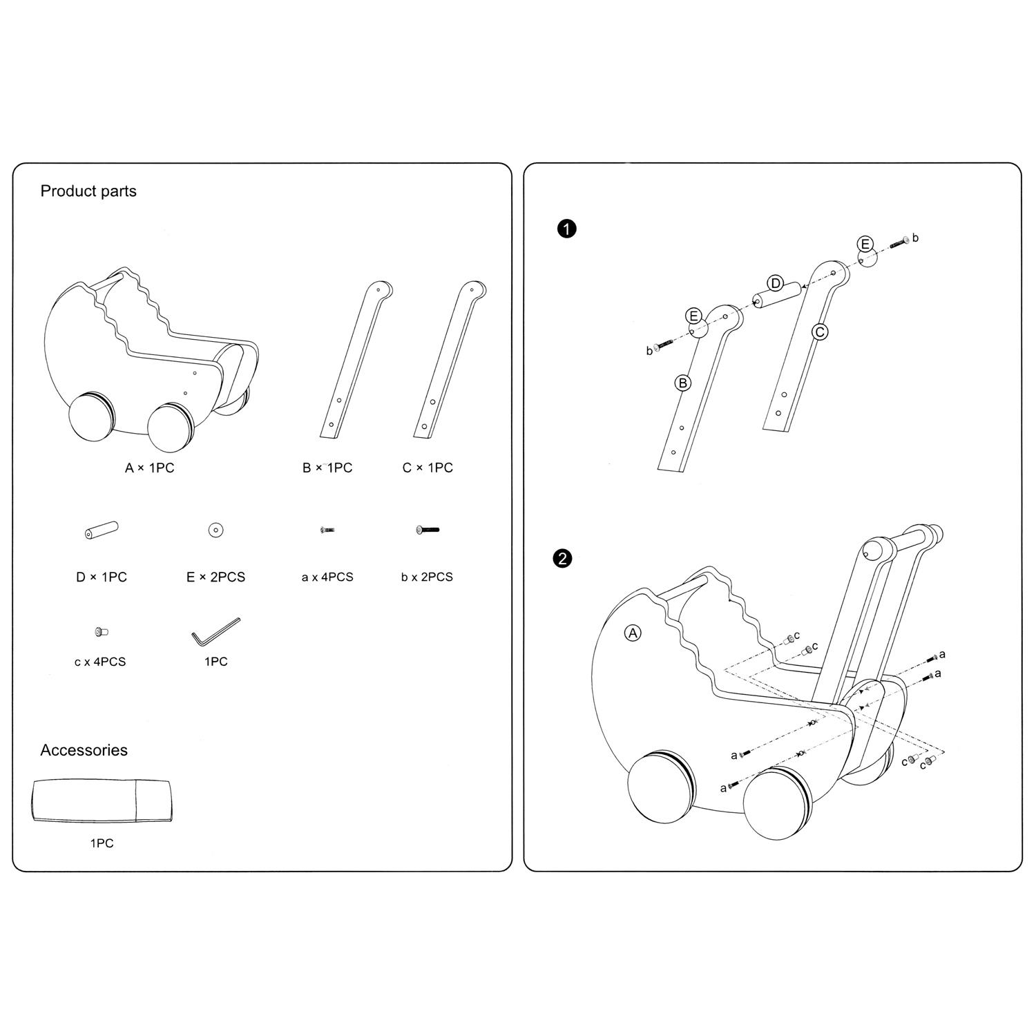 SET INCLUDES - Pretty pink Princess Pram with bedding. Doll Not Included. Includes Instruction Manual.