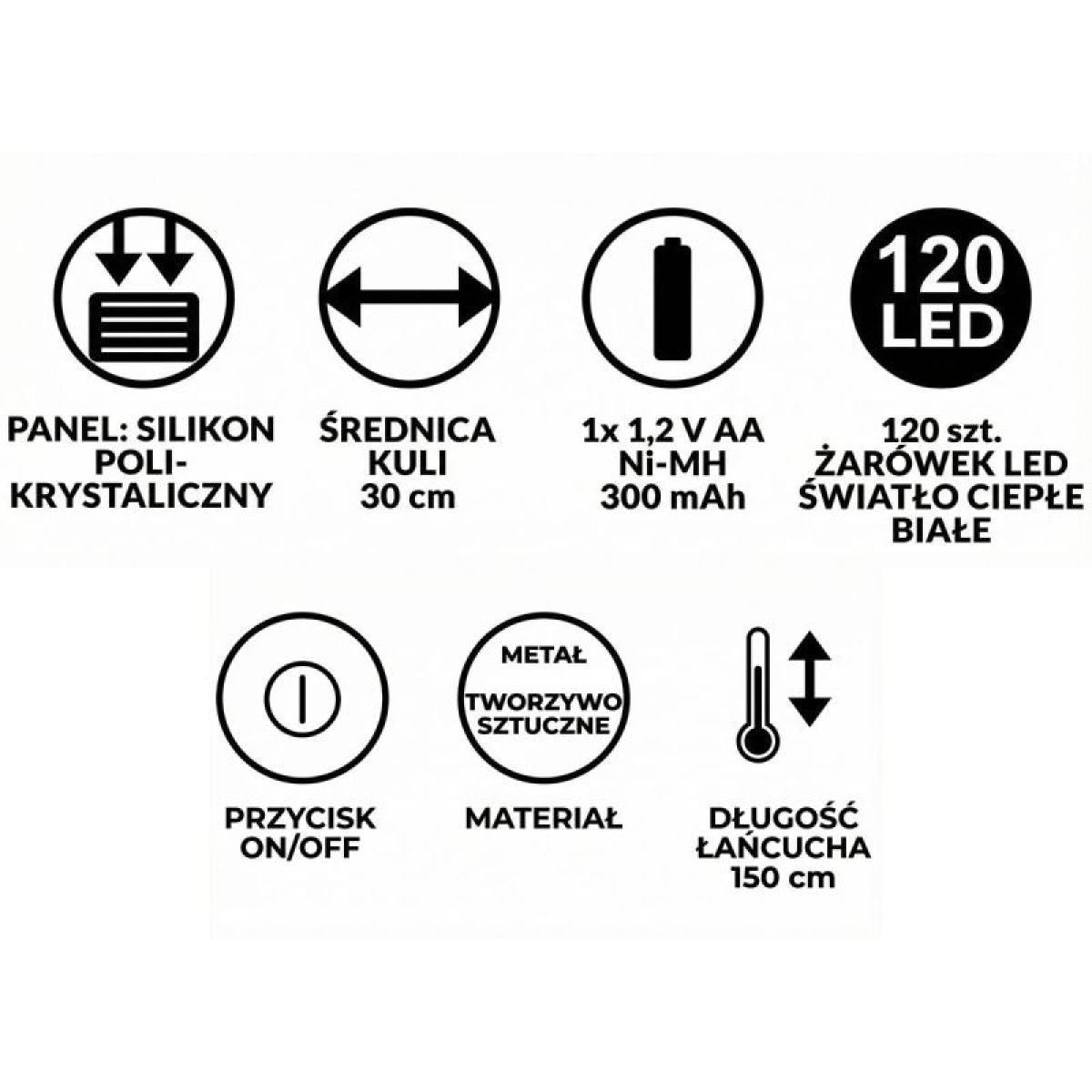 CHAIN WITH CLIP The open, openwork design of the ball is modern and stylish. The lamp is a decorative element both during the day and at night. It is a perfect addition to garden and patio arrangements.