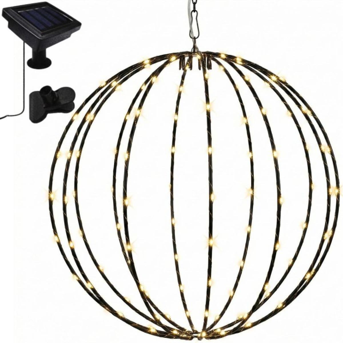 This hanging solar lamp in the shape of a decorative ball illuminates the space with warm LED light and creates a unique atmosphere – exactly where you need it.