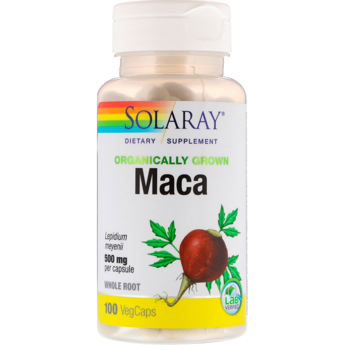 Non-GMO 100% Vegan Dietary Supplement Lepidium Meyenii 500 mg Per Capsule Whole Root Lab Verified Discussion: Solaray ally grown products are 100% vegan, excipient-free and contain no fillers or additional ingredients. farming protects consumers' and farm workers' personal health, improves soil and water purity, encourages biodiversity and supports small farming operations.