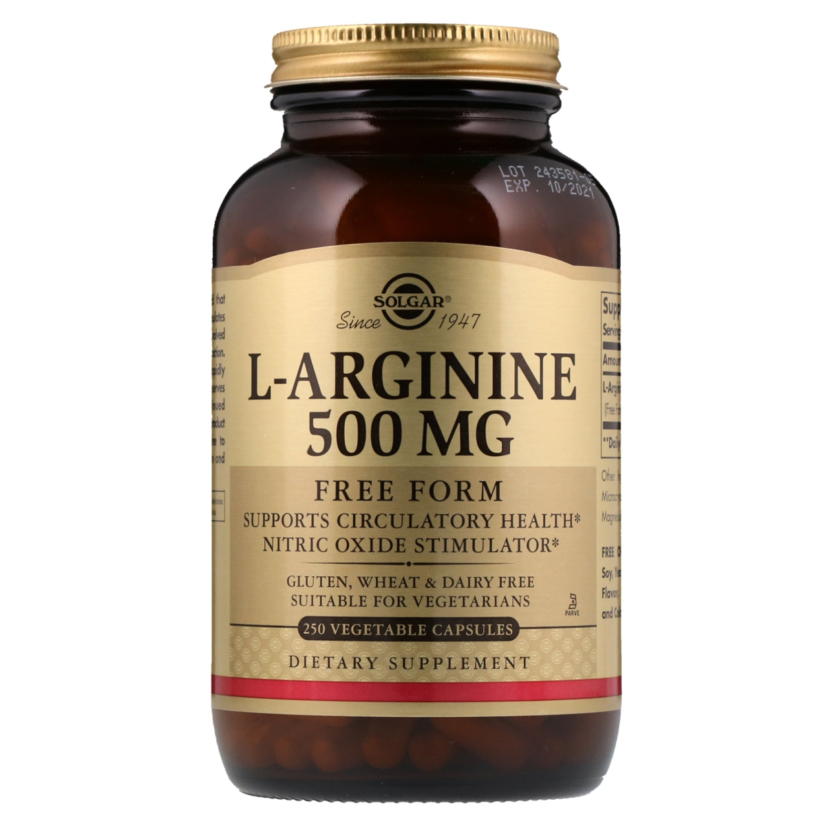 Since 1947 Free Form Supports Circulatory Health Nitric Oxide Stimulator Gluten, Wheat & Dairy Free Suitable for Vegetarians Kosher Parve Dietary Supplement L-Arginine is an amino acid that promotes heart health. It stimulates nitric oxide, a compound involved in circulatory and immune function. Nitric oxide degrades very rapidly after its formation. L-Arginine serves as the precursor for continued nitric oxide production. This product provides Free Form L-Arginine to promote optimal absorption and assimilation.