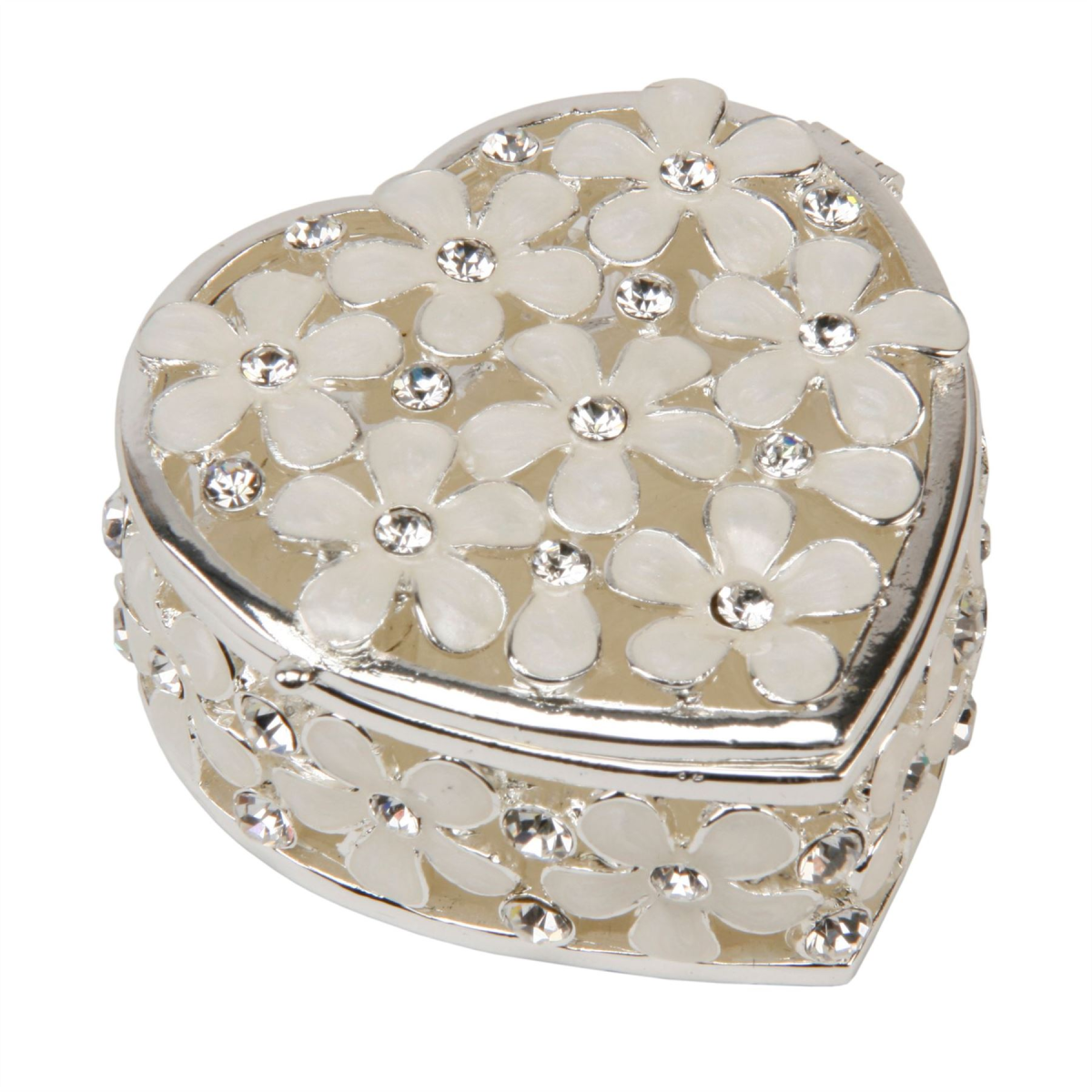 Sophia Heart Shape Trinket Box with Cream Flowers & Crystals