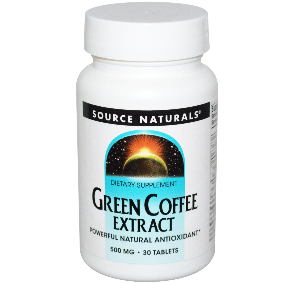 Dietary Supplement Powerful Natural Antioxidant Source Naturals Green Coffee Extract is a source of powerful antioxidant that helps protect against oxidative stress caused by free radicals - thought to be a factor in aging. Derived from raw, unroasted coffee beans and low in caffeine, green coffee extract has been shown in research to support normal cellular regeneration and growth. Chlorogenic and caffeic acid, two primary compounds responsible for the activity of green coffee, are present in Source Naturals Green Coffee Extract.