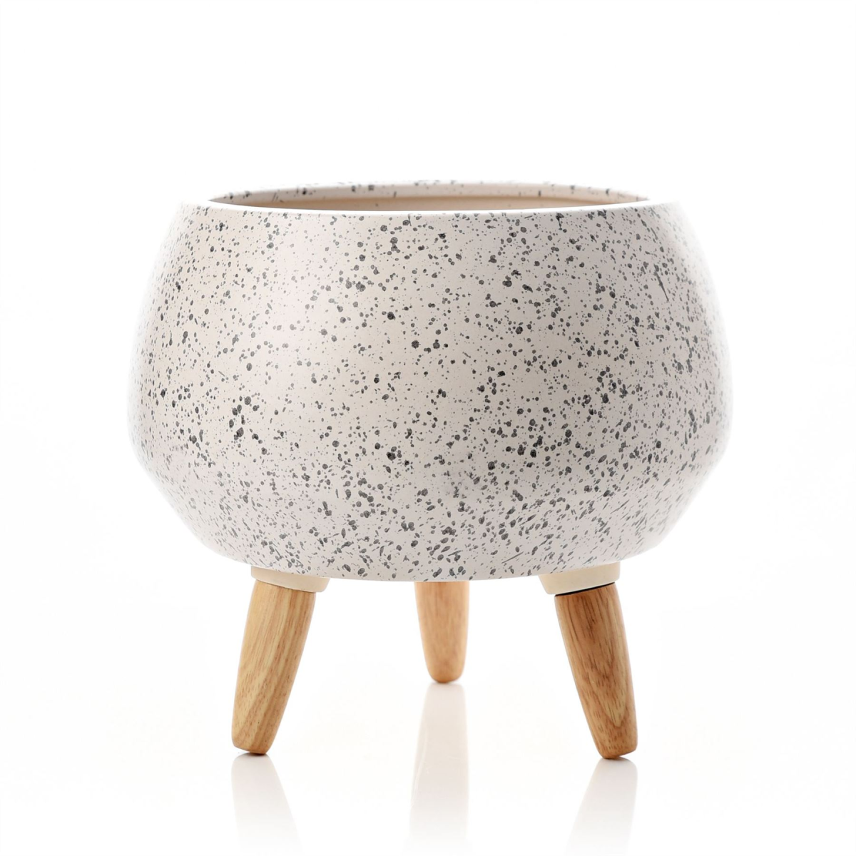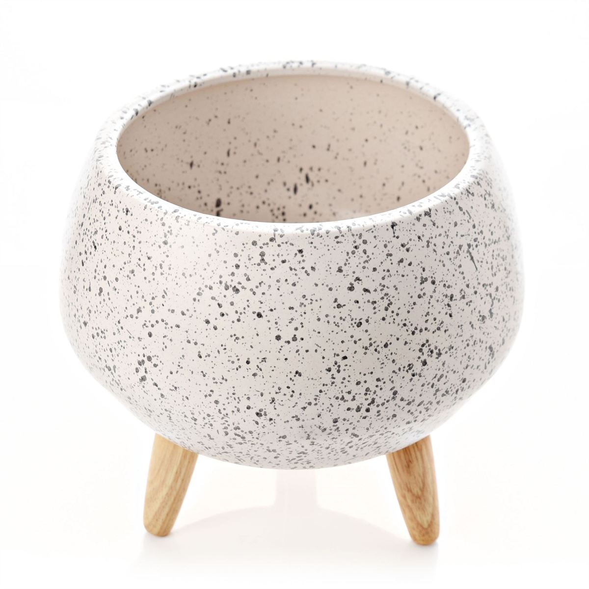 This speckled planter by HESTIA� is sure to compliment your favourite plant, whilst adding something stylish to your living space. The wooden stand fashionably accompanies the soft white of the ceramic, creating a planter that your guests will love. The dinstinctive speckled design sets this beautiful planter apart, and will make a unique home for your favourite greenery.