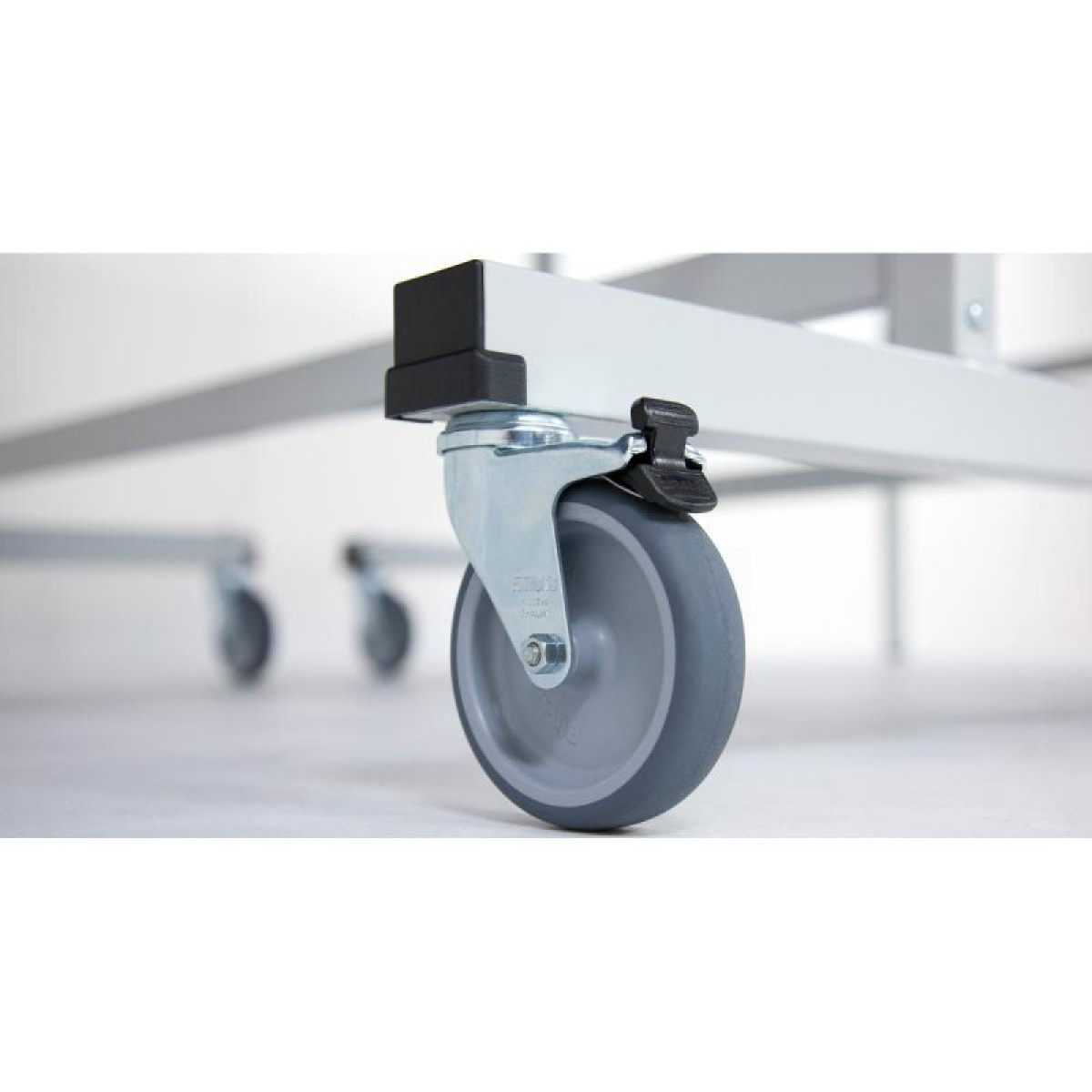 • 4 swivel wheels with a diameter of 100 mm with rubber tread on each tabletop, 2 with locking mechanism
