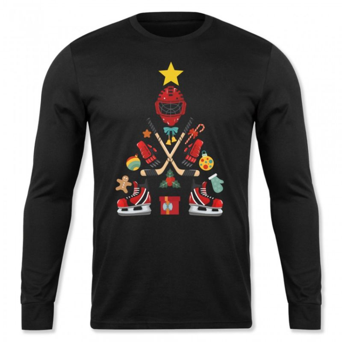 Sportrebel Prem Xmas T-Shirt Long Man Long sleeve t-shirt. Graphic: Christmas tree made from hockey equipment. High-quality women's t-shirt in medium weight. Fashionable and comfortable fit. 100% cotton. Printed with FLEX technology.