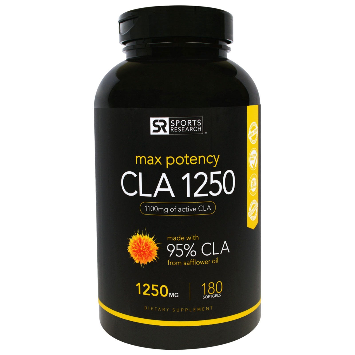 Max Potency 1100 mg of Active CLA Made with 95% CLA from Safflower Oil Dietary Supplement Made with Non-GMO Ingredients Gluten Free GMP Certified 3rd Party Tested - Certified Delivering 95% Pure CLA Non-Stimulating Formula Sports Research CLA 1250 derived from non-GMO safflower oil with a minimum 95% active conjugated linoleic acid (CLA), per liquid softgel. Along with diet and exercise, CLA 1250 is a great way to support your overall weight management plan.