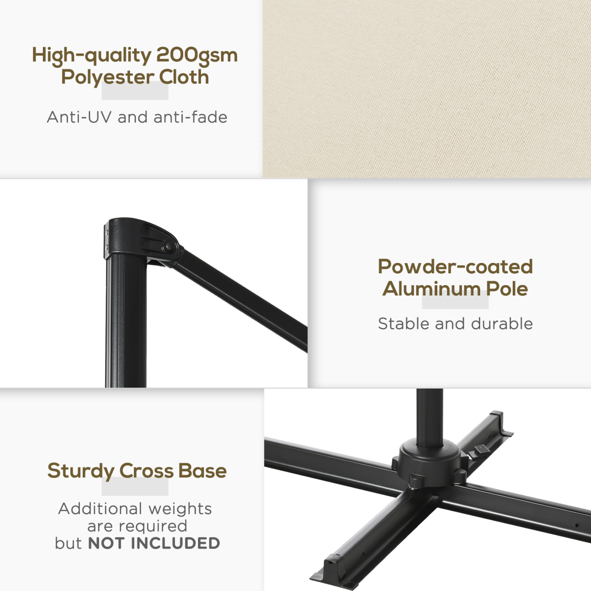 - Aluminium pole: A strong core for this cantilever patio umbrella.