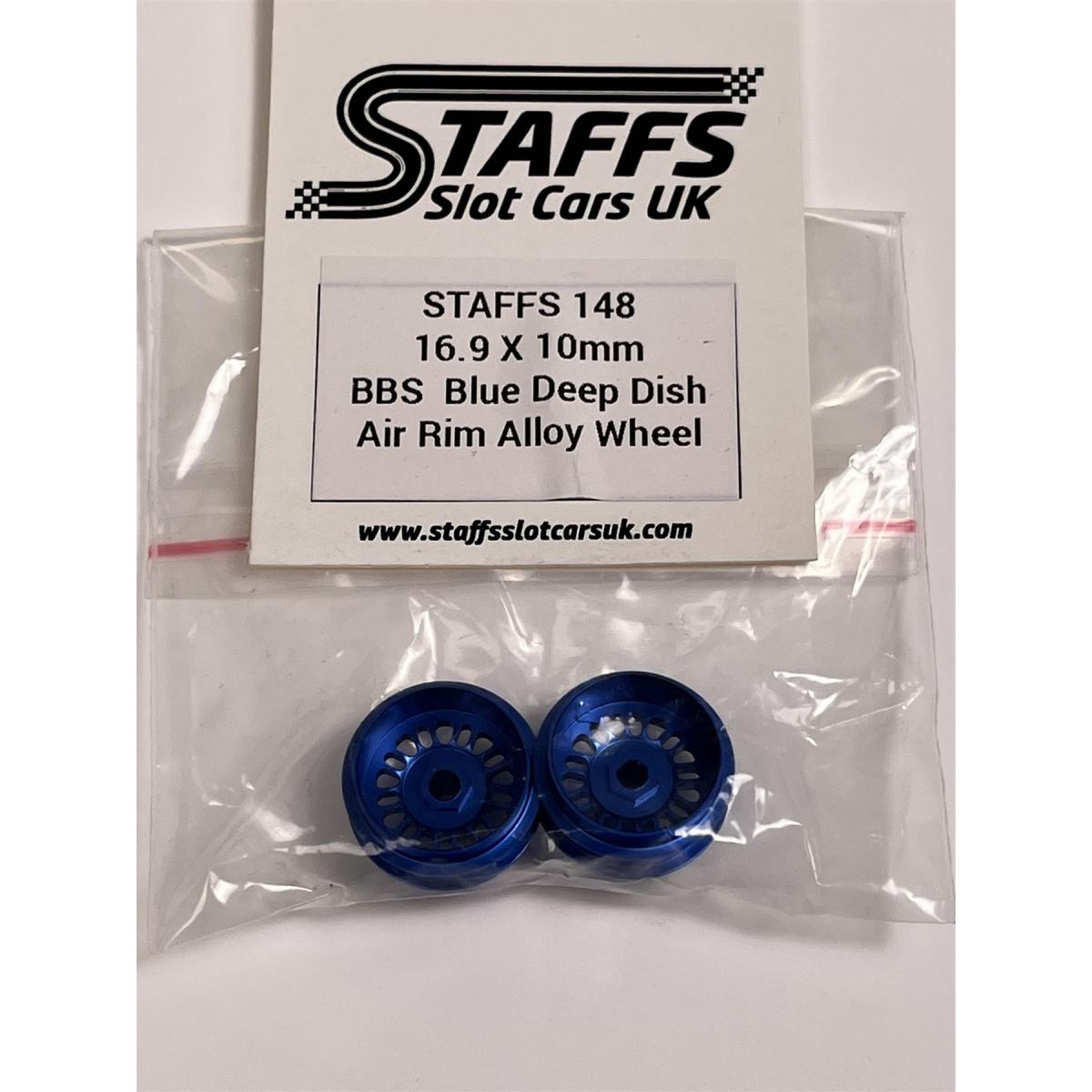 Staffs Slot Cars BBS Style Deep Dish Air Alloy Wheels Blue 16.9 x 10 mm x2 STAFFS 148
