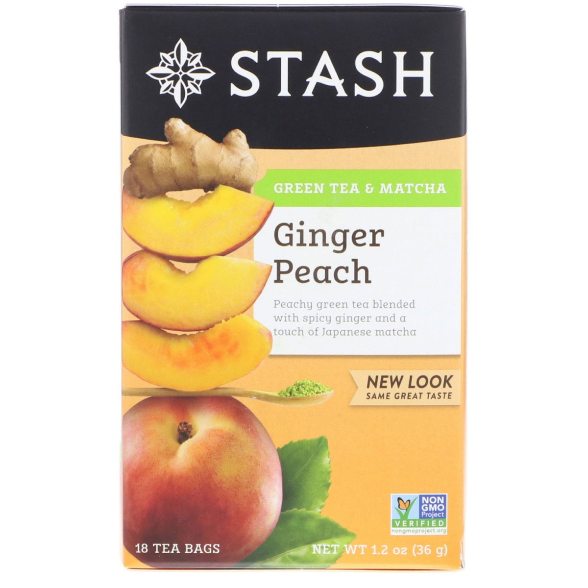 Stash Tea, Green Tea & Matcha, Ginger Peach, 18 Tea Bags, 1.2 oz (36 g)
