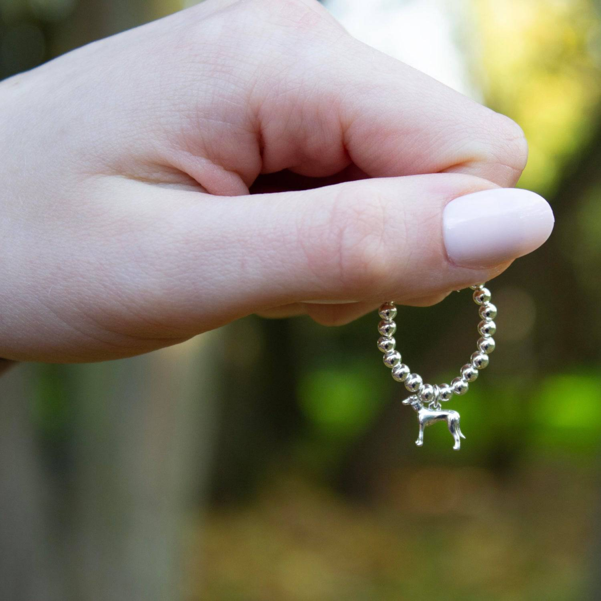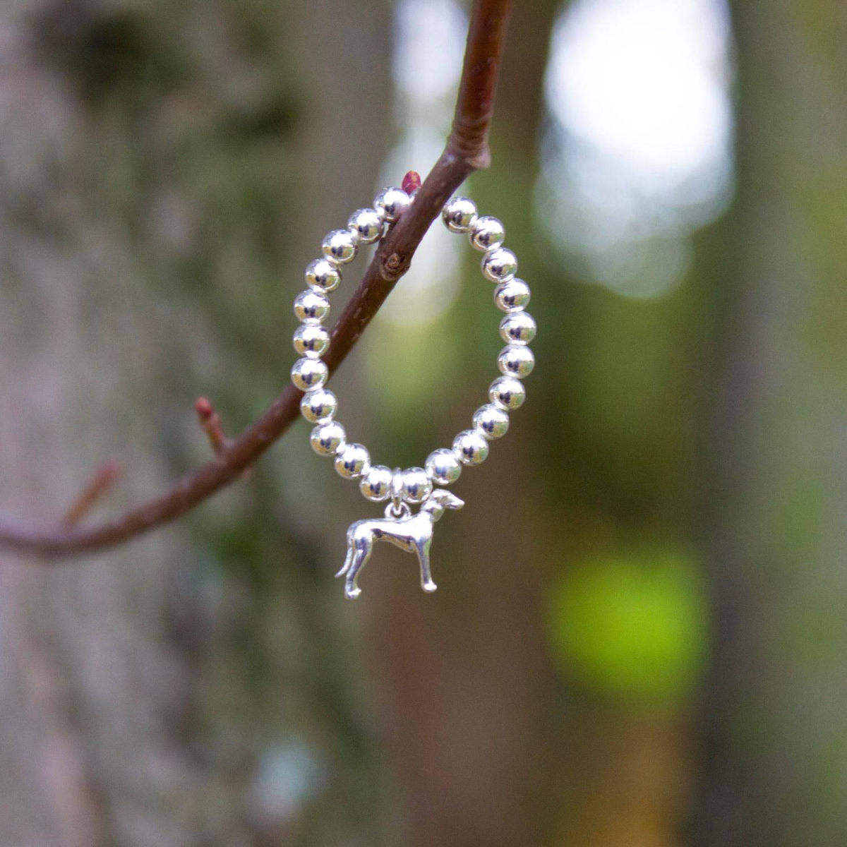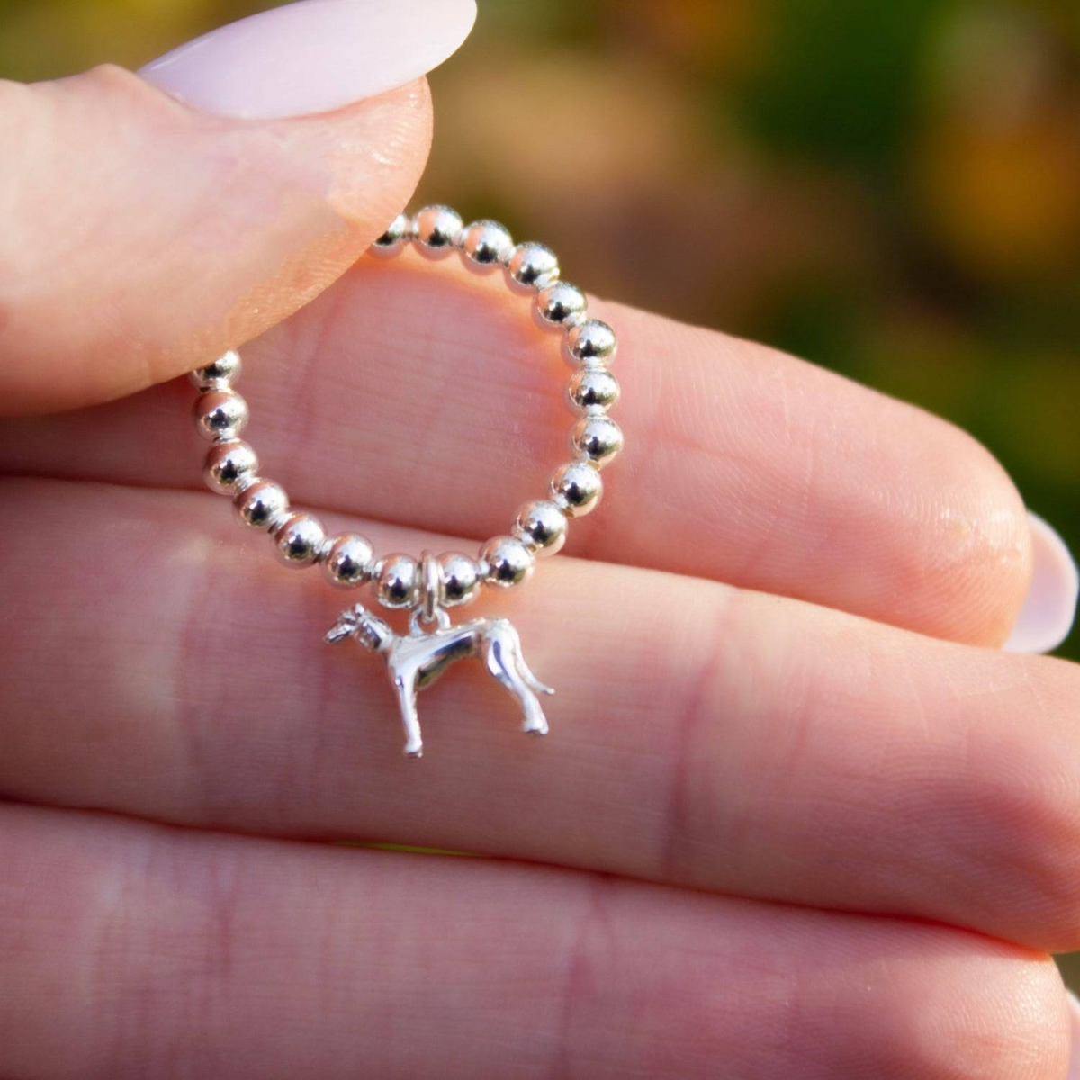 Sterling Silver Ball Bead Ring With Greyhound Charm