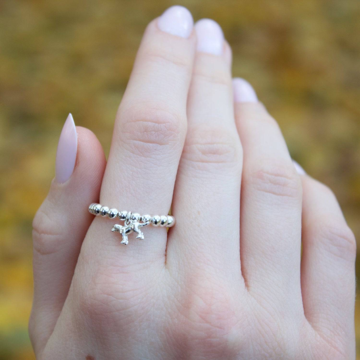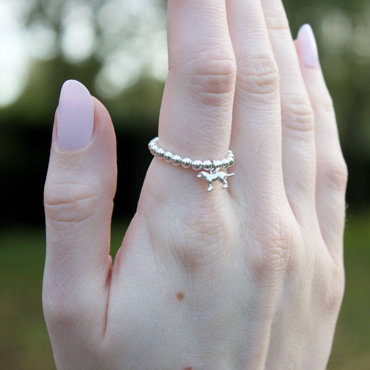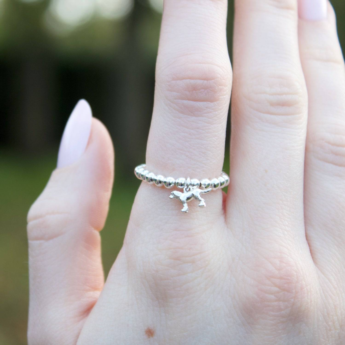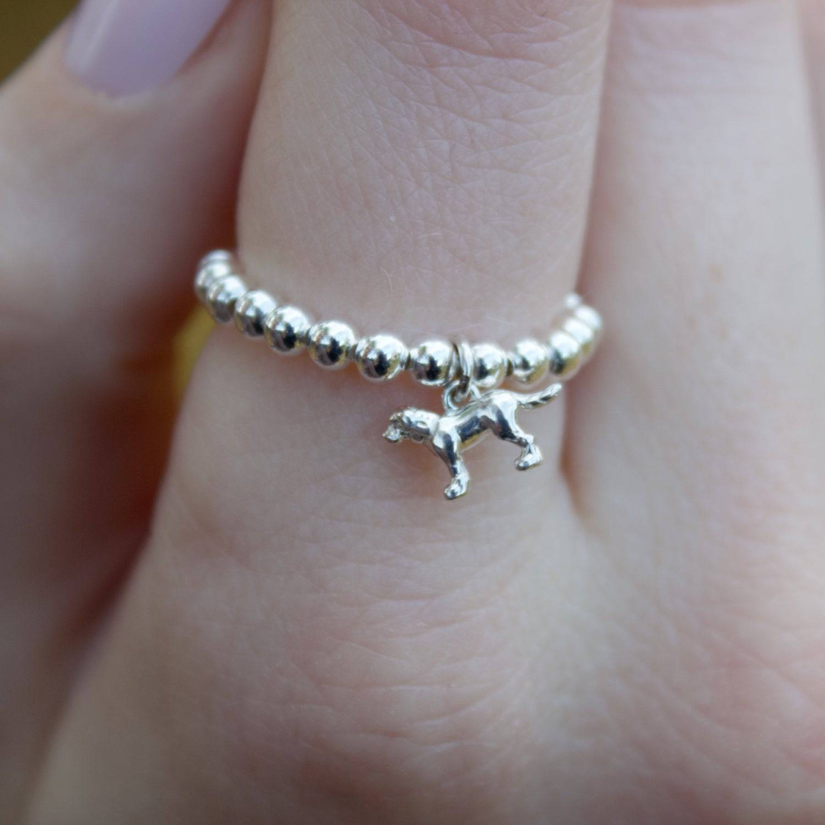 Sterling Silver Ball Bead Ring With Labrador Charm